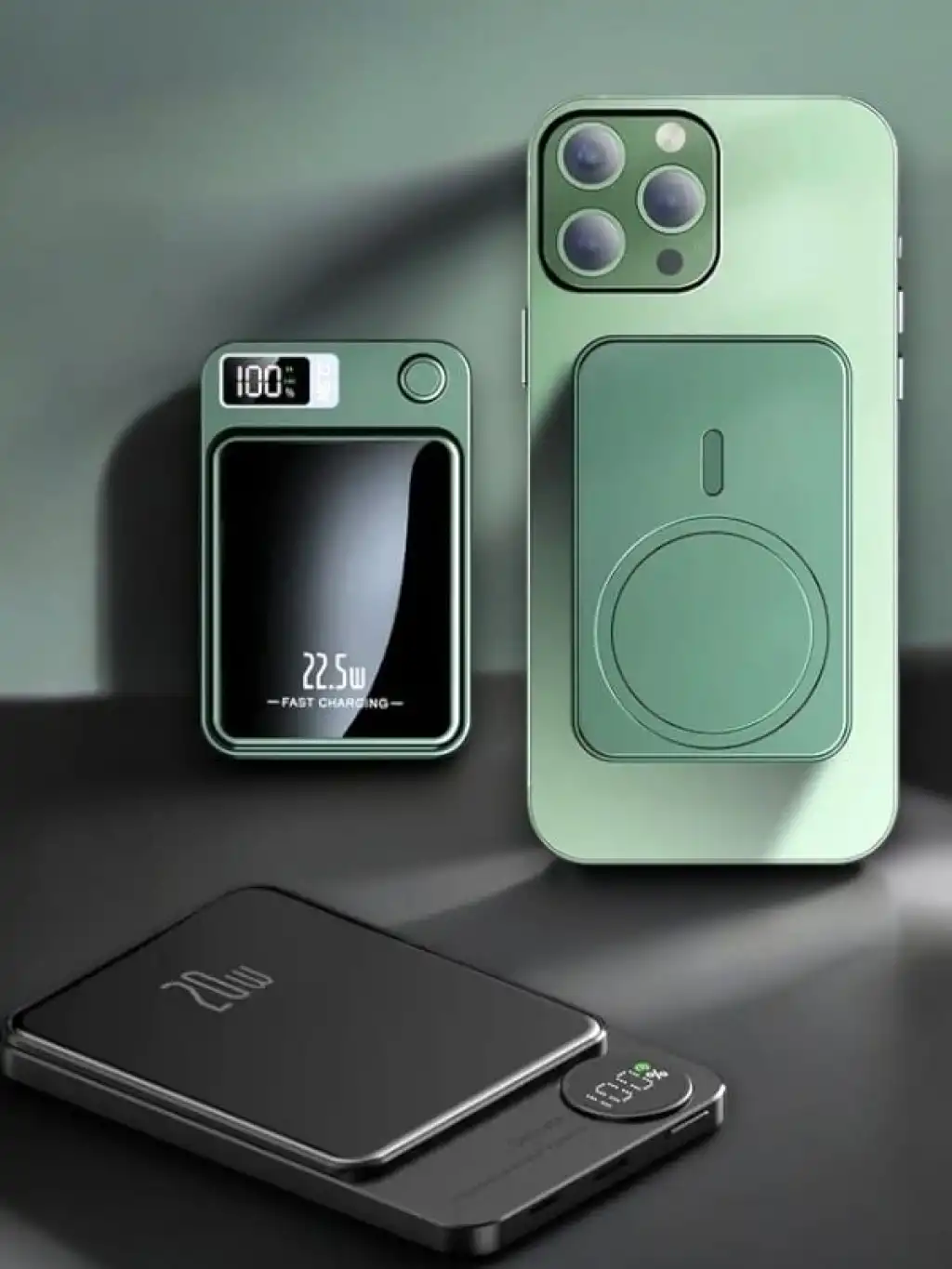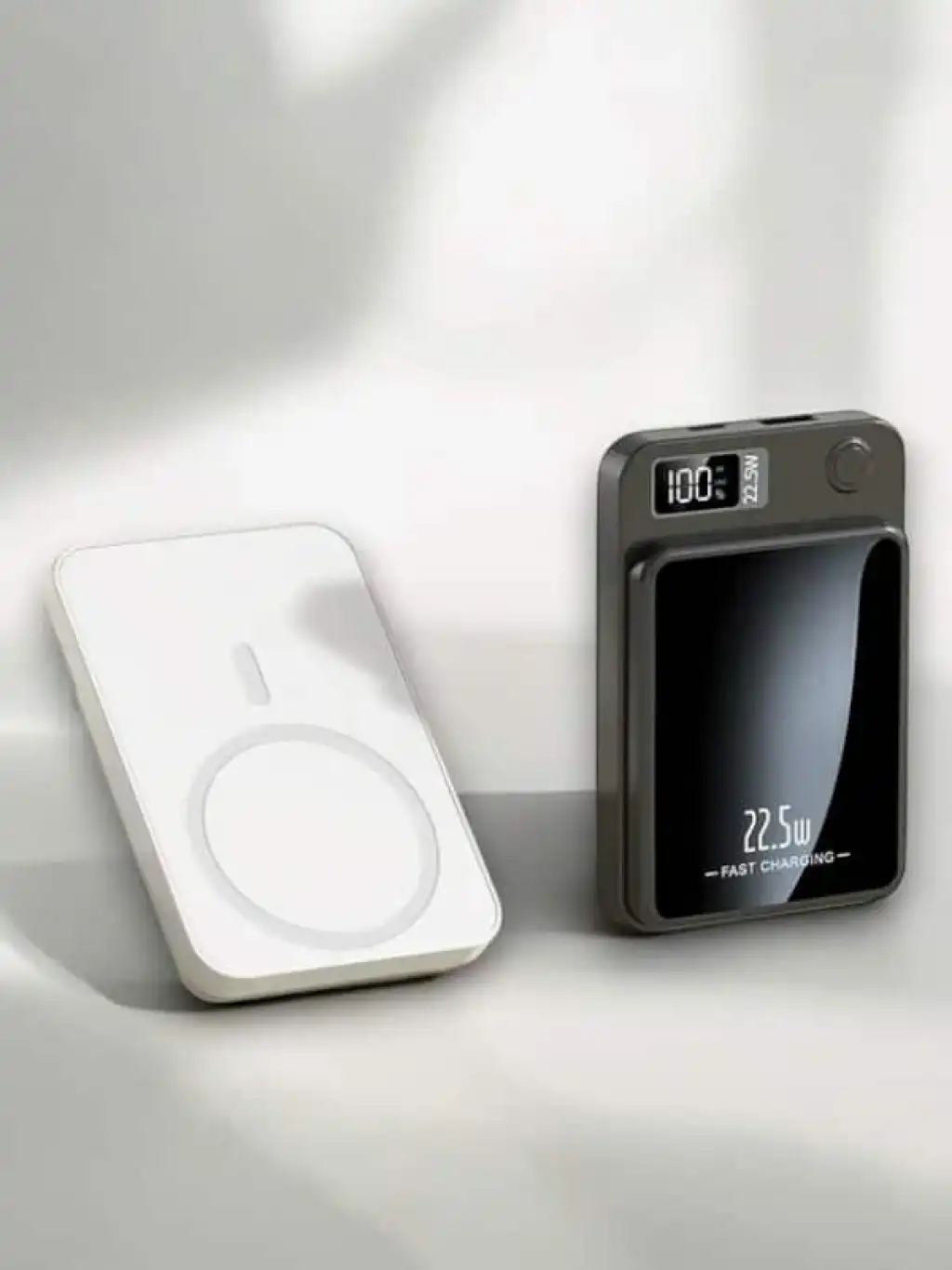 10.000 mAh Wireless Şarjlı Powerbank Magsafe 22.5 Watt Hızlı Şarj Edilebilir PowerBank Yüksek performanslı şarj deneyimi ve şık tasarımıyla her an yanınızda. Hızlı Şarj Teknolojisi: 22.5 watt'lık hızlı şarj özelliği sayesinde cihazlarınızı hızla doldurun. Zamanınızı daha etkin kullanın ve her an iletişimde kalın. Magsafe Uyumluluğu: Apple cihazlarınızla uyumlu olan Magsafe teknolojisi ile mükemmel bir uyum sağlar. Güvenli ve güçlü bağlantı ile cihazlarınızı kolayca şarj edin. Geniş Uyum: iPhone, iPad, AirPods ve diğer Qi uyumlu cihazlarla uyumludur. Herhangi bir Apple cihazınızı şarj etmek için idealdir. Taşınabilirlik: Hafif ve ince tasarımıyla kolayca taşınabilir. Seyahatlerde, iş gezilerinde veya günlük kullanımda size pratiklik sunar. İki Renk Seçeneği: Siyah ve beyaz olmak üzere üç farklı renk seçeneğiyle tarzınıza uygun olanı seçin. Güvenlik ve Dayanıklılık: Yüksek kaliteli malzemelerden üretilmiş olan powerbank, aşırı şarj, kısa devre ve aşırı ısınma gibi durumlarda otomatik olarak koruma sağlar. Kapasite: (10000mAh/5000mAh) kapasite ile uzun süreli kullanım imkanı sağlar.
