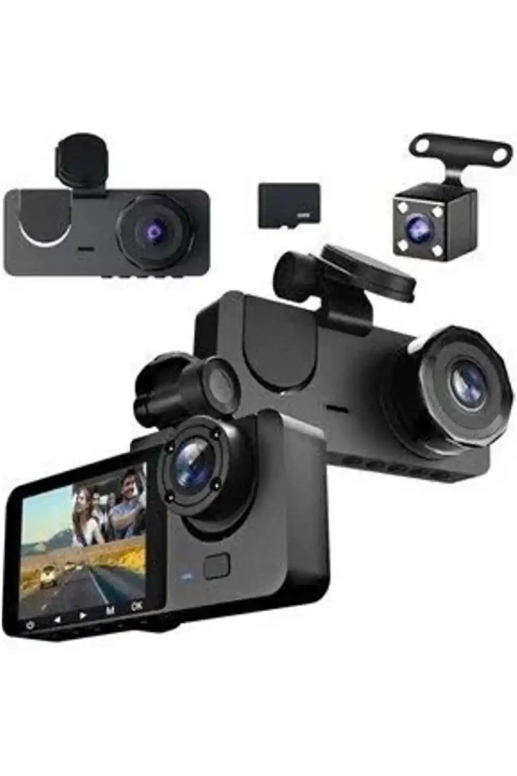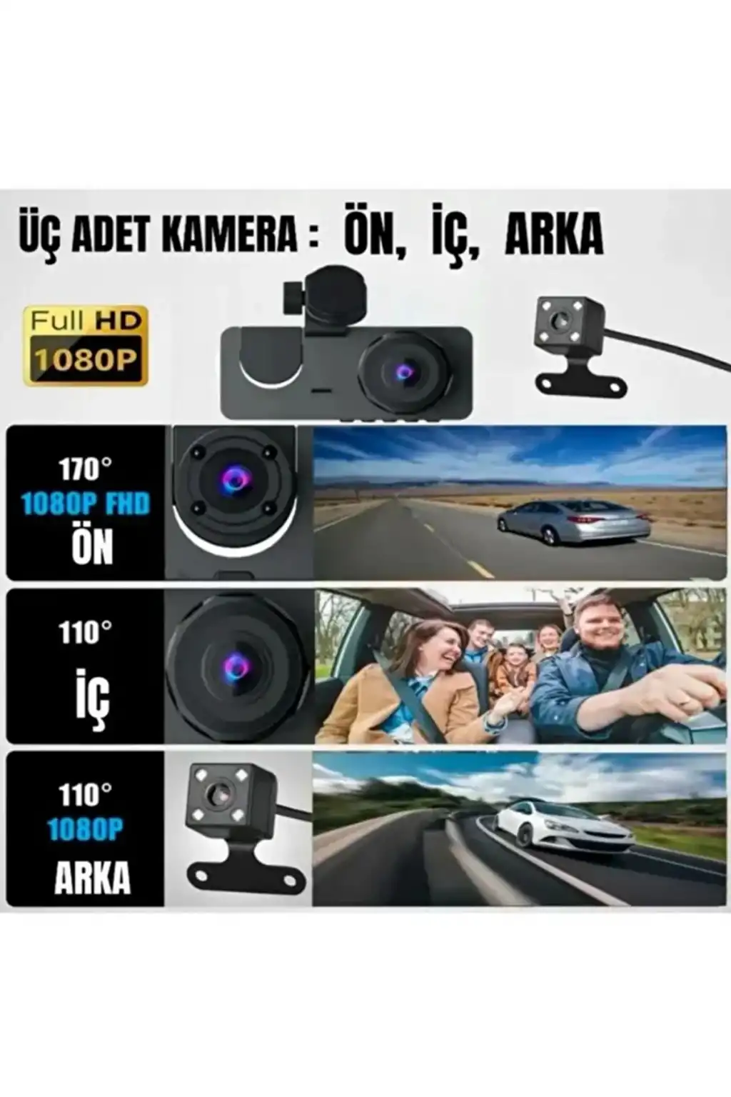 1080P Full HD Çözünürlüklü Üç Kameralı Araç İçi Kamera - Park ve Sürüş Güvenliği