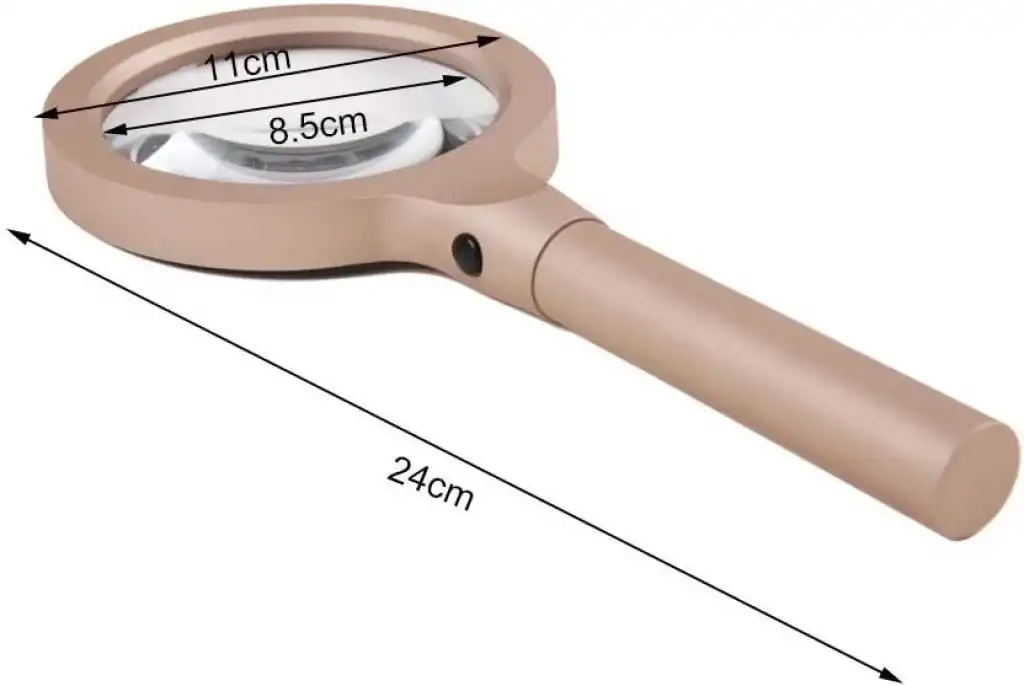 Mercek boyutu: çap 8,5cm/3,3'' , büyüteç uzun 24cm/9,4''