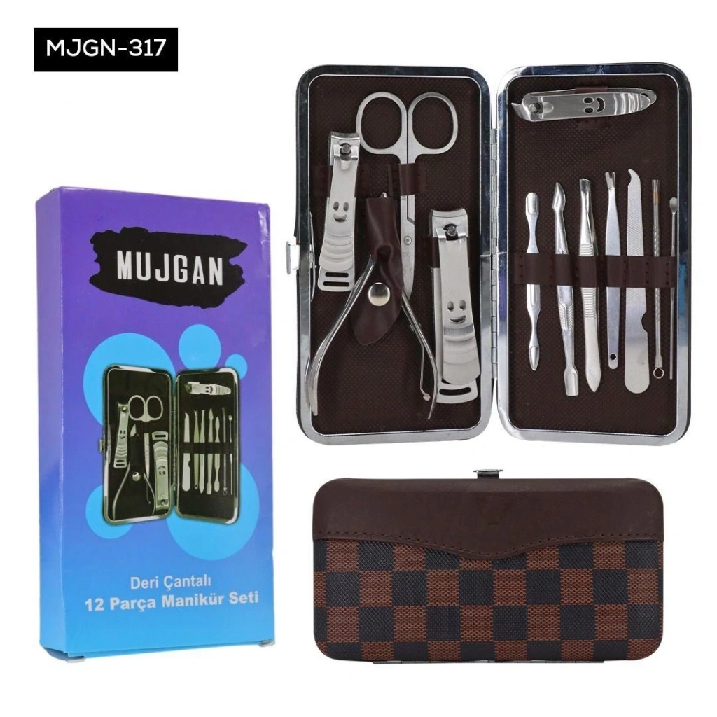 Deri Çantalı 12'li Manikür Seti