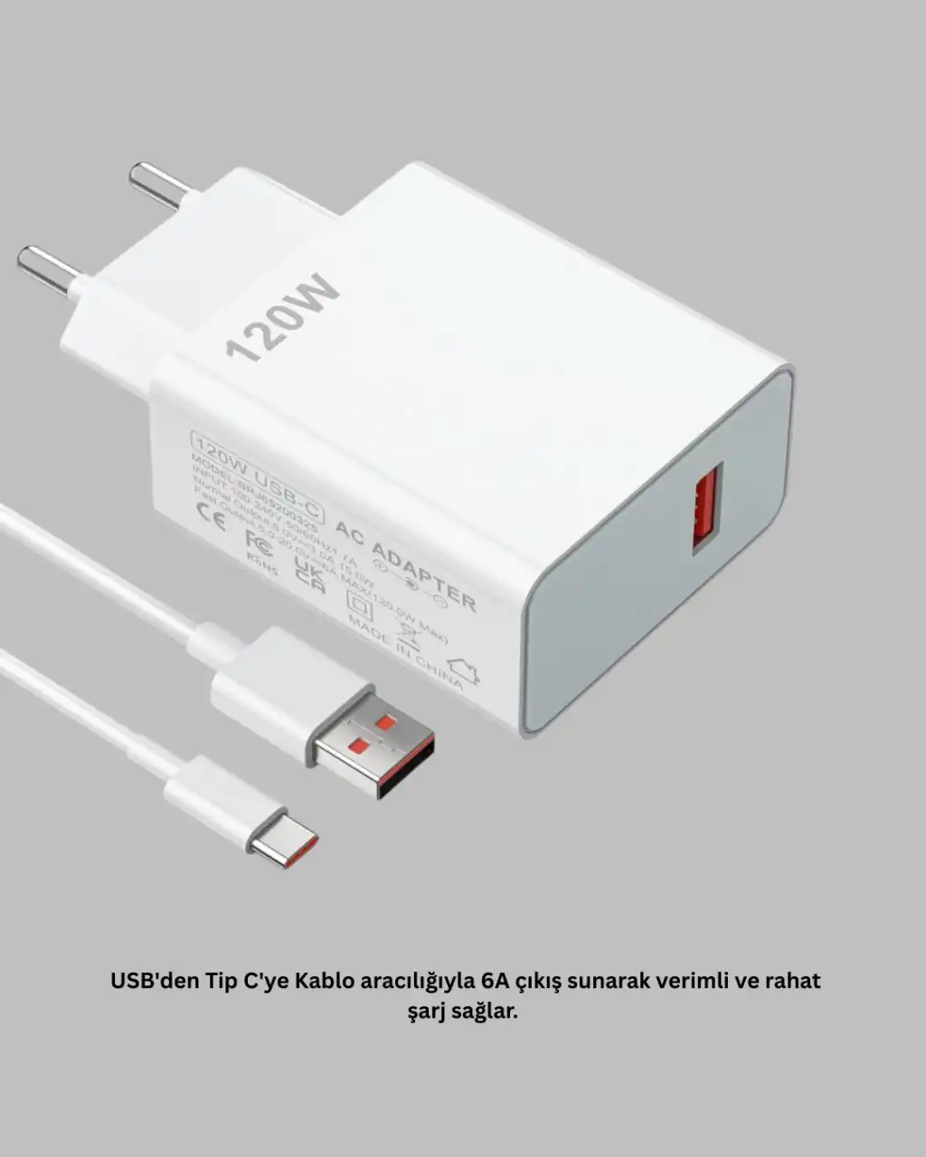 120 Watt hızlı şarj adaptörü, yoğun kullanım gerektiren günlerde bile cihazlarınızı en hızlı şekilde doldurabilmeniz için tasarlanmıştır. Yüksek güç çıkışı sayesinde büyük bataryalı telefonları bile çok kısa sürede şarj eder. Akıllı güç kontrol sistemi, cihaza gönderilen enerjiyi analiz ederek en uygun şarj hızını belirler.Seyahat dostu kompakt tasarımı, adaptörü her kullanım alanına uygun hale getirir. Dayanıklı dış yüzeyi uzun süreli kullanımda aşınmaya karşı direnç sağlar. Ayrıca gelişmiş güvenlik teknolojisi, aşırı ısınma ve akım risklerini ortadan kaldırır.Samsung S20–S23 serisi,Note 10–12, Poco F3, Poco X4 gibi Type-C girişli cihazlarda en verimli hızları sunar. Tabletler, kulaklıklar, taşınabilir oyun cihazları ve diğer Type-C elektroniklerle tam uyumludur.Kutu içindeki kablo 6A hızlı şarj desteğiyle hem veri aktarımı hem enerji iletimi için mükemmel performans sunar. Güçlü, güvenli ve yüksek hızda şarj deneyimi isteyen kullanıcılar için tasarlanmış bir üründür.