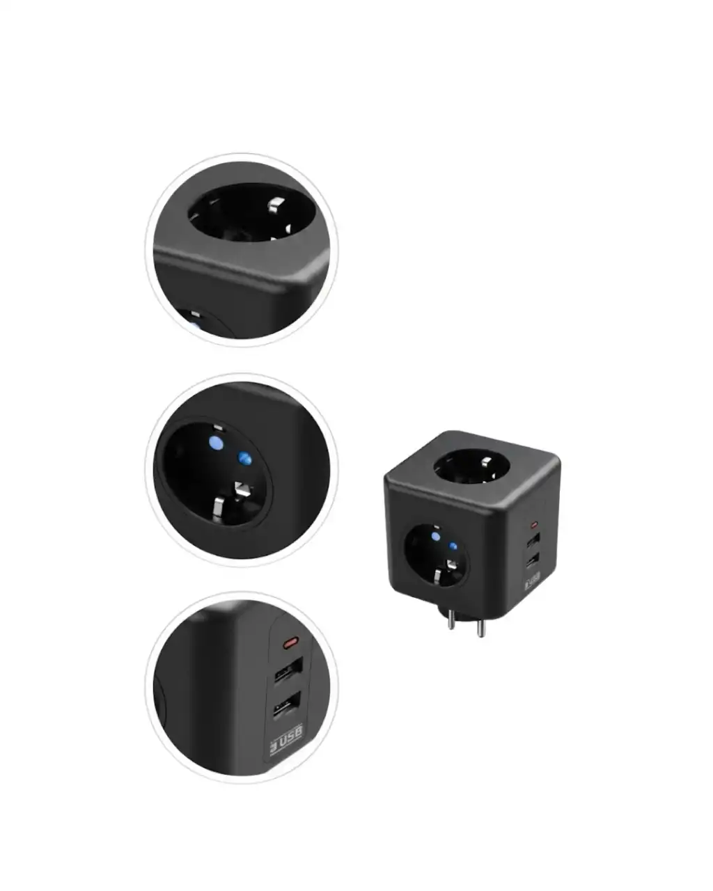 Akım ve Voltaj Korumalı Küp Priz 3 USB Destekli