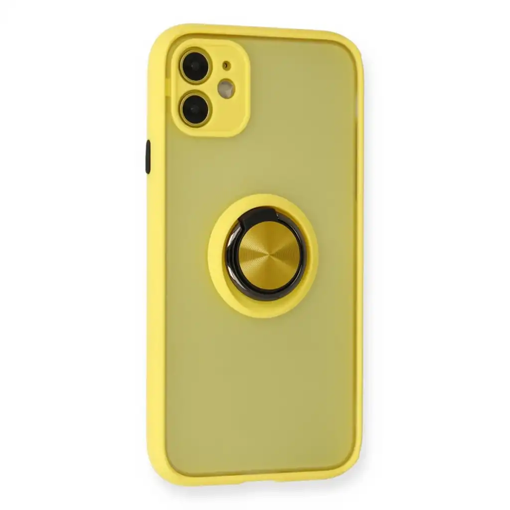 Apple İphone 11 Kılıf Montreal Yüzüklü Silikon Kapak - Sarı