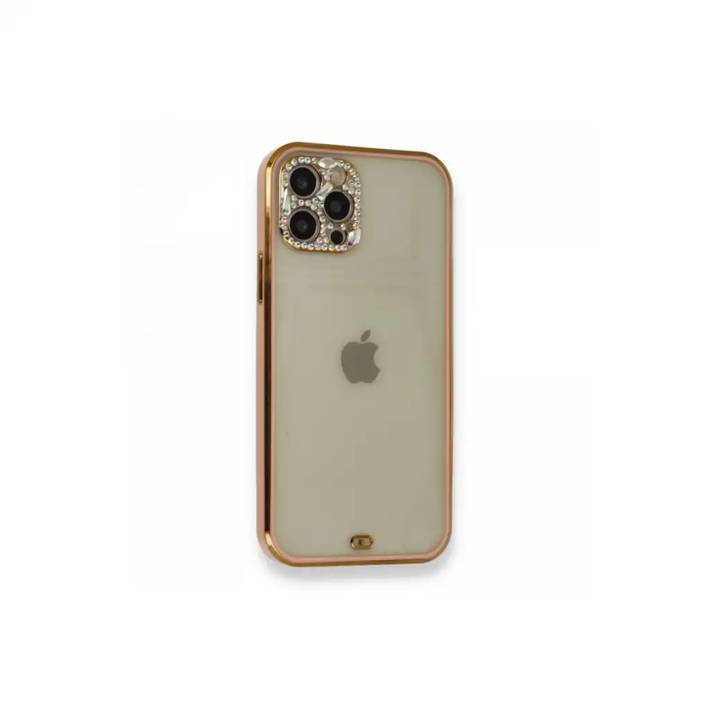 Apple İphone 12 Pro Kılıf Liva Taşlı Silikon - Pembe