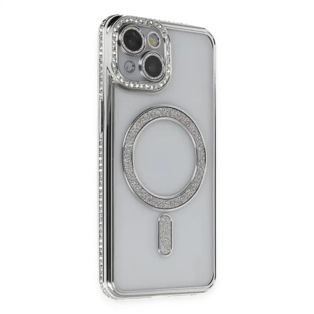 Apple İphone 13 Kılıf Joke Simli Magneticsafe Kılıf - Gümüş
