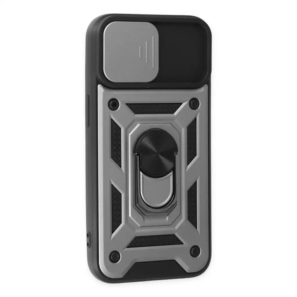 Apple İphone 14 Kılıf Pars Lens Yüzüklü Silikon - Gümüş