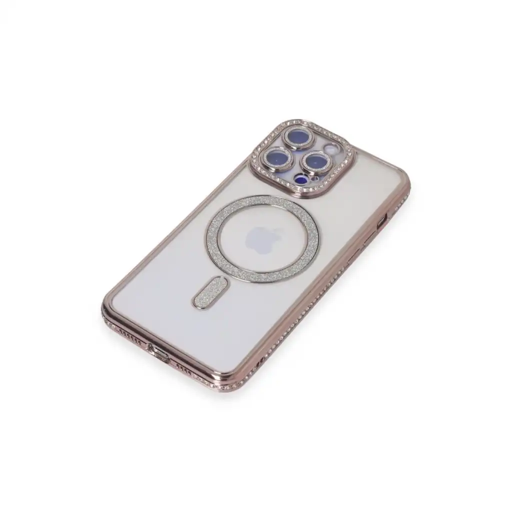 Apple İphone 14 Pro Max Kılıf Joke Simli Magneticsafe Kılıf - Pembe
