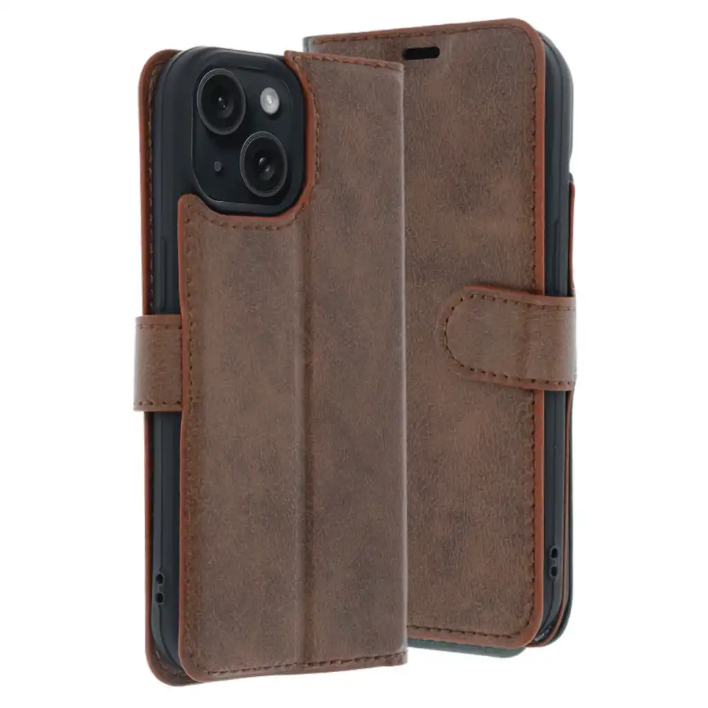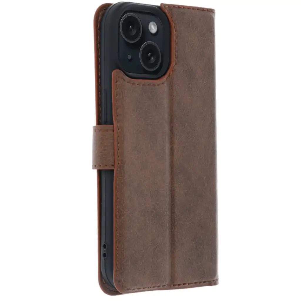 Apple İphone 15 Trend S Plus Kapaklı Kılıf - Taba