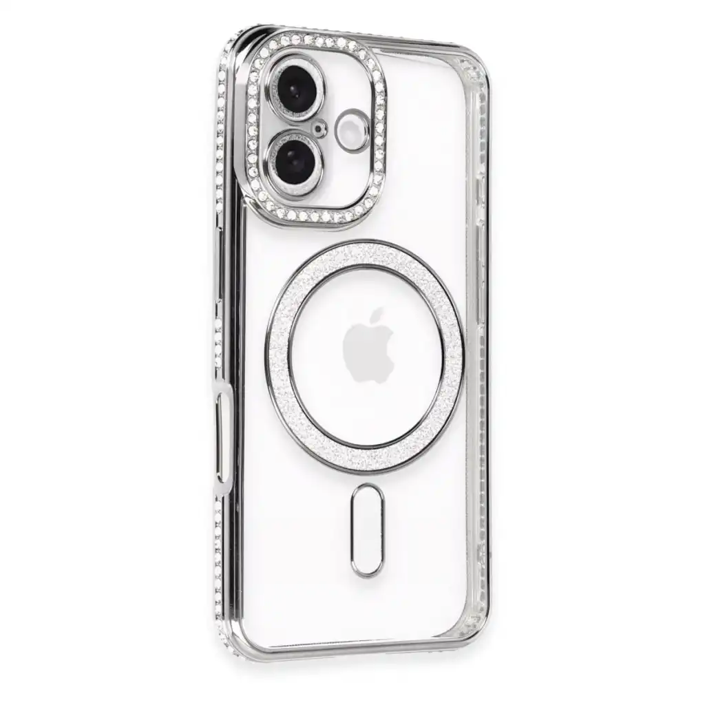 Apple İphone 16 Kılıf Joke Simli Magneticsafe Kılıf - Gri
