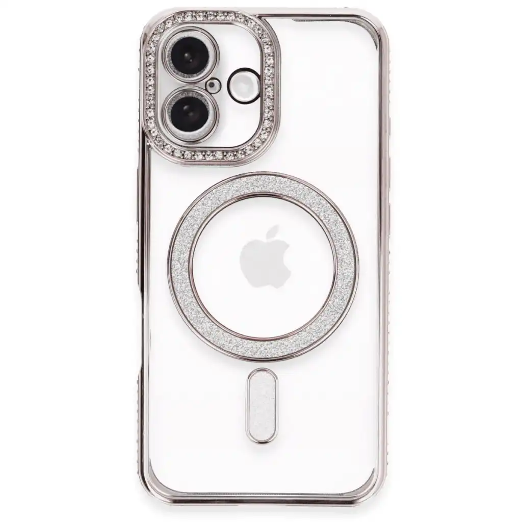 Apple İphone 16 Plus Kılıf Joke Simli Magneticsafe Kılıf - Pembe