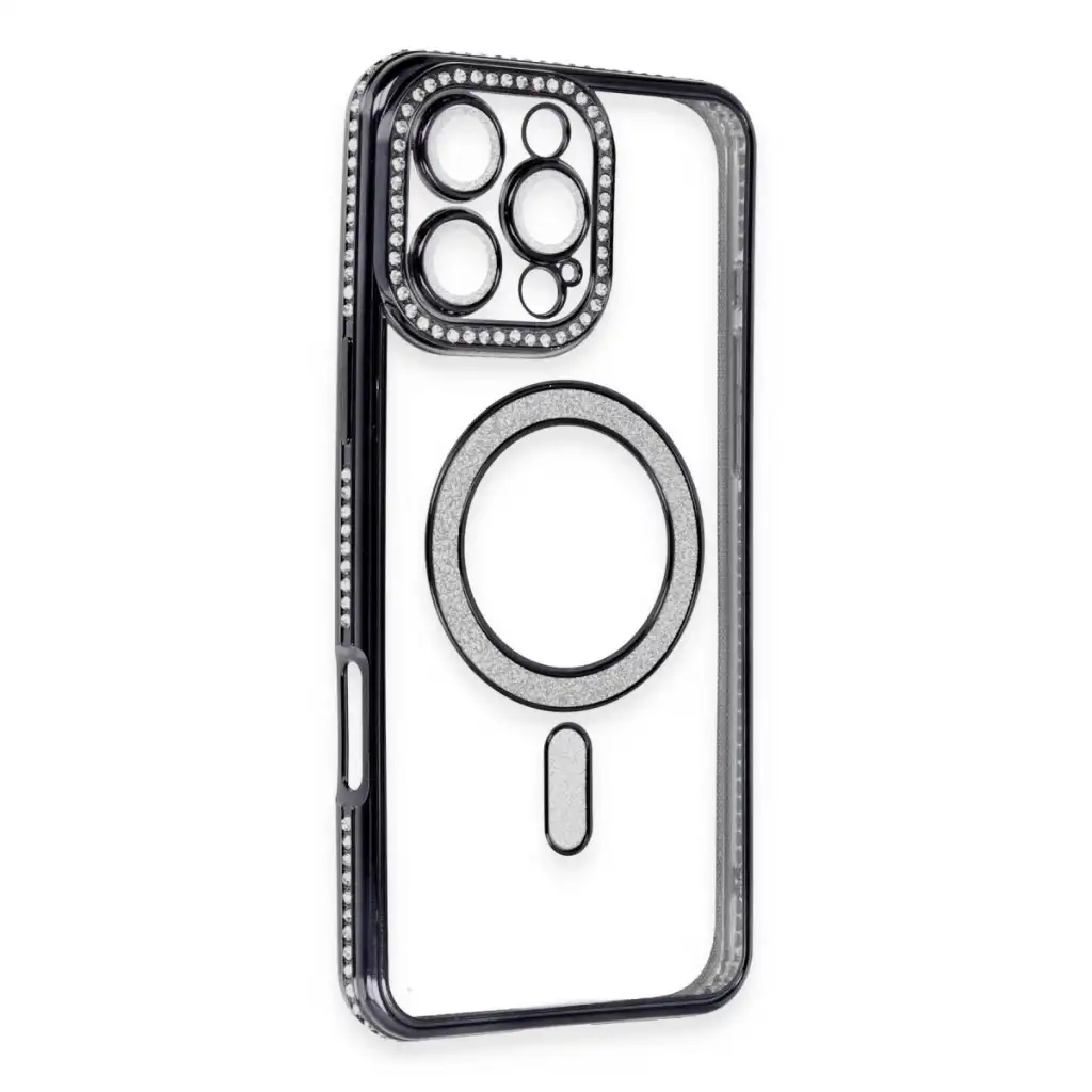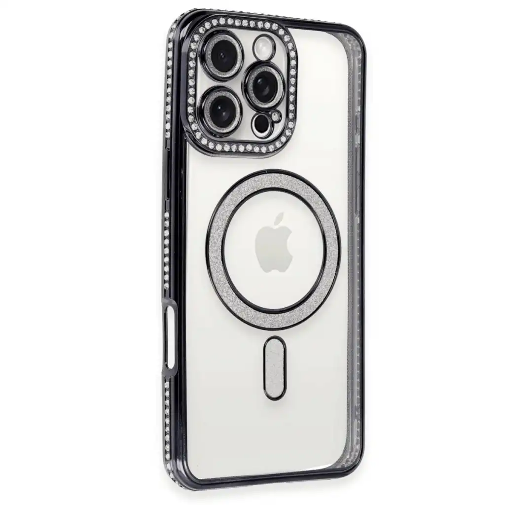 Apple İphone 16 Pro Kılıf Joke Simli Magneticsafe Kılıf - Siyah