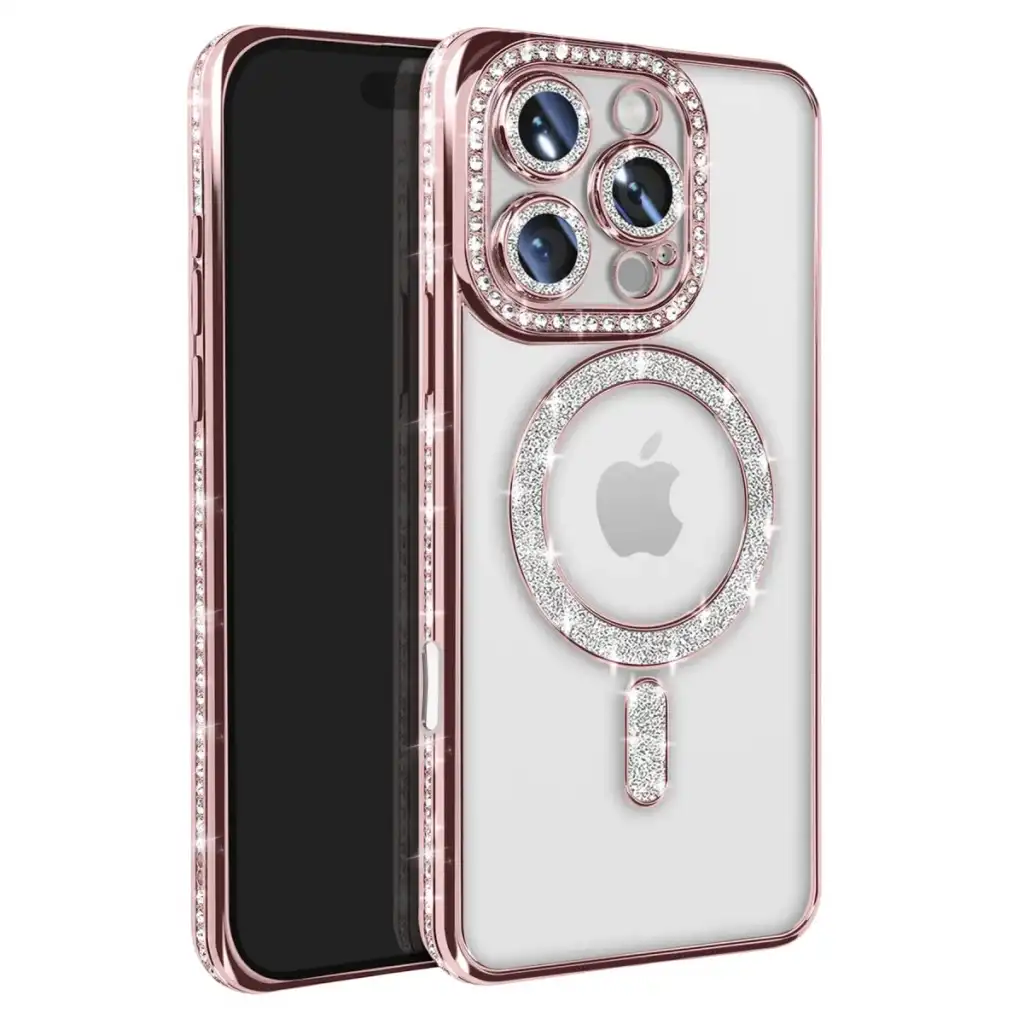 Apple İphone 16 Pro Max Kılıf Joke Simli Magneticsafe Kılıf - Pembe