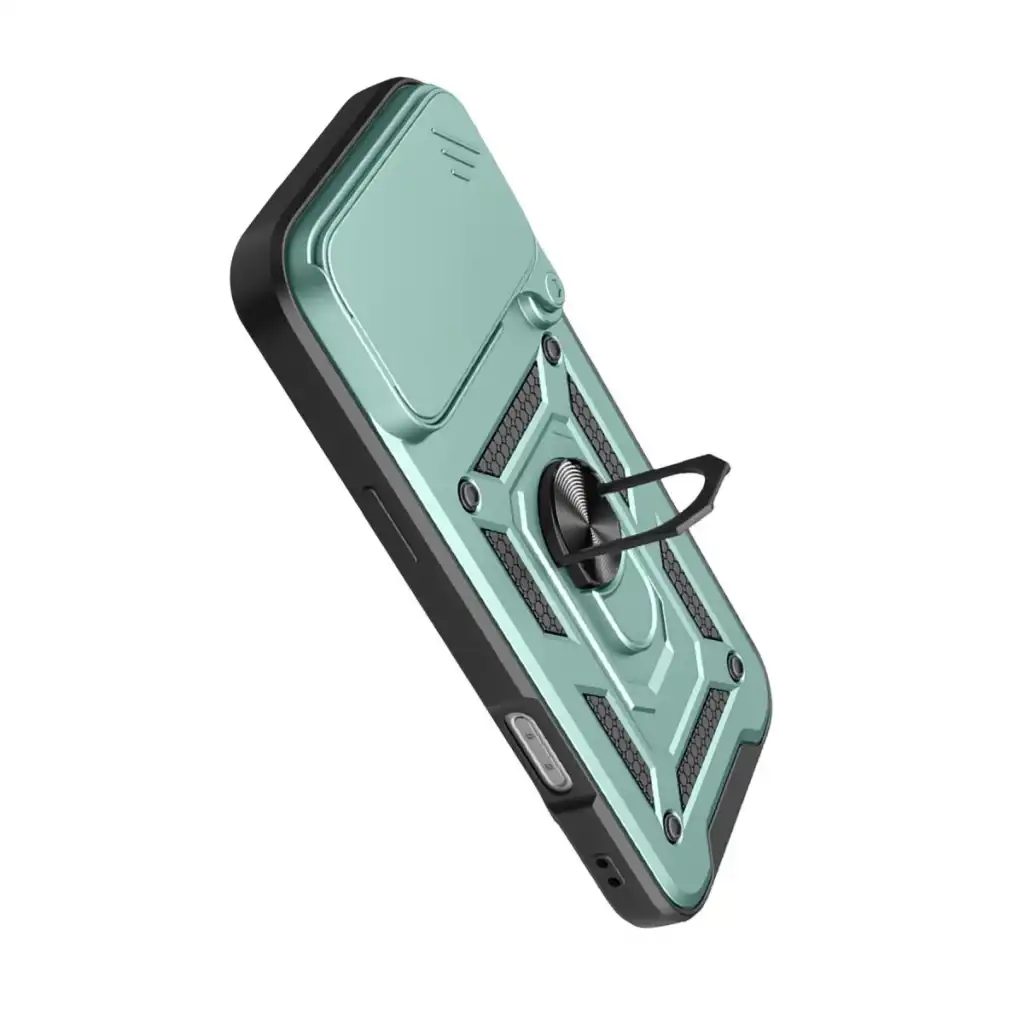 Kılıfın arka kısmında yer alan entegre metal halka hem tutucu hem de stand olarak işlev görür. Eller serbest video izleme, içerik görüntüleme ya da masaüstü kullanımı için idealdir.