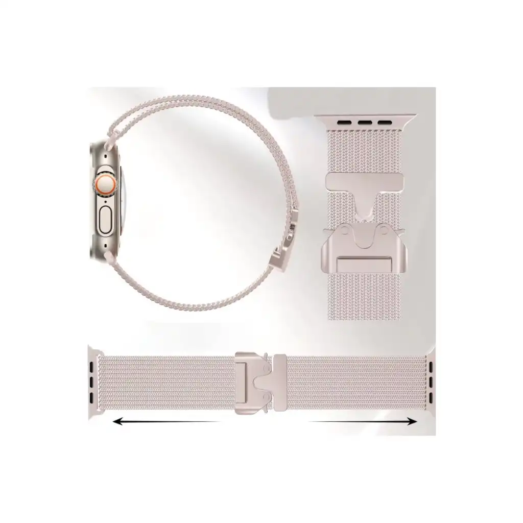 Şıklığı ve Dayanıklılığı Buluşturan Tasarım Akıllı saatiniz için ideal bir aksesuar olan Metal  Kordon, metal dokusu ve estetik tasarımıyla göz dolduruyor. Alüminyum alaşımdan üretilen bu kordon, zarif ve detaylı metal dokuma desenleriyle stilinize sofistike bir dokunuş kazandırır. Hem günlük hayatta hem de özel günlerde saatinize modern ve prestijli bir görünüm katmak için mükemmel bir tercih.