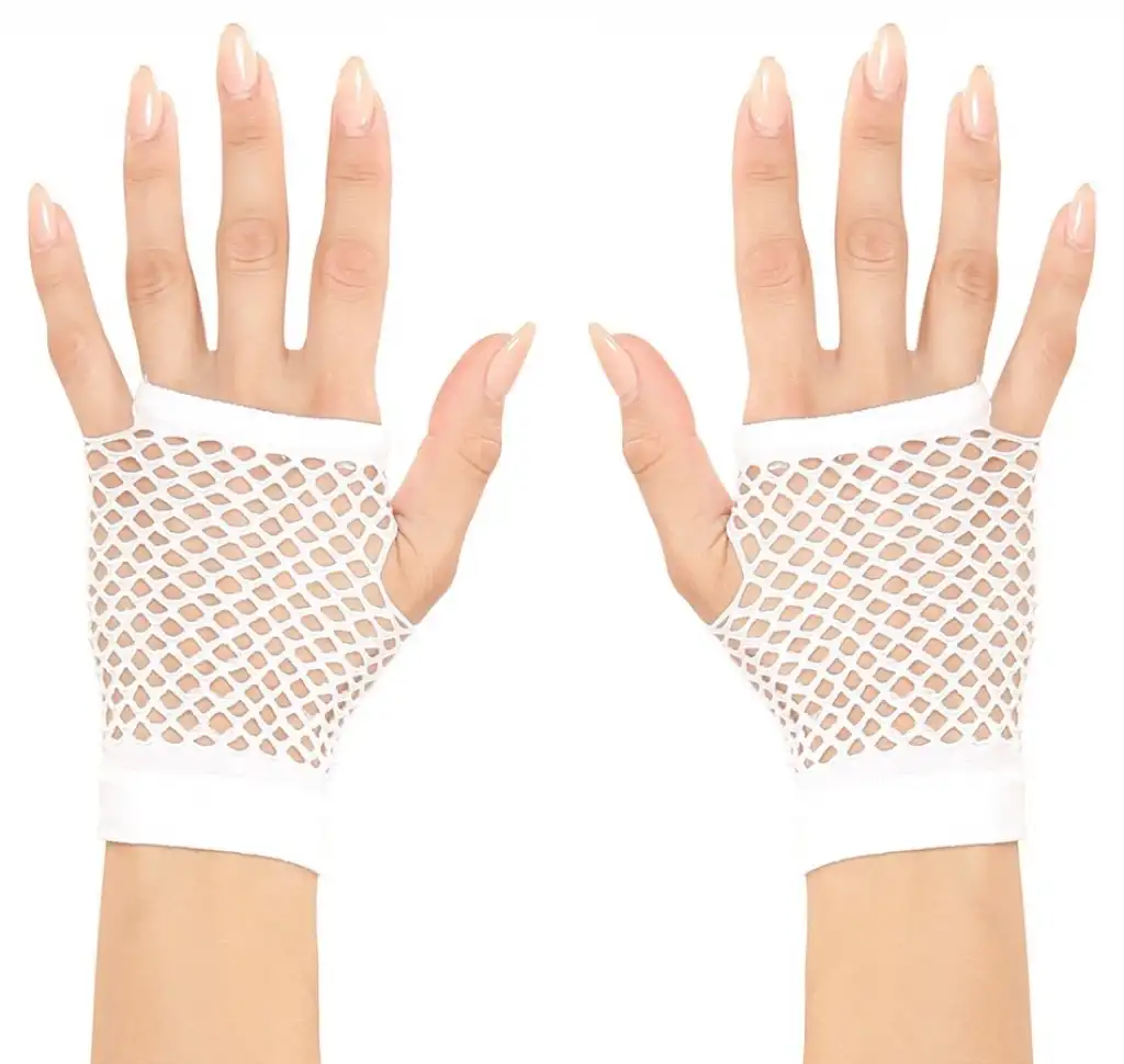 Karnaval ve cadılar bayramı kostümünüze bir dokunuş katacak kısa beyaz örgü eldivenler | Görünümünüzü bu 11 cm beyaz örgü eldivenlerle tamamlayın