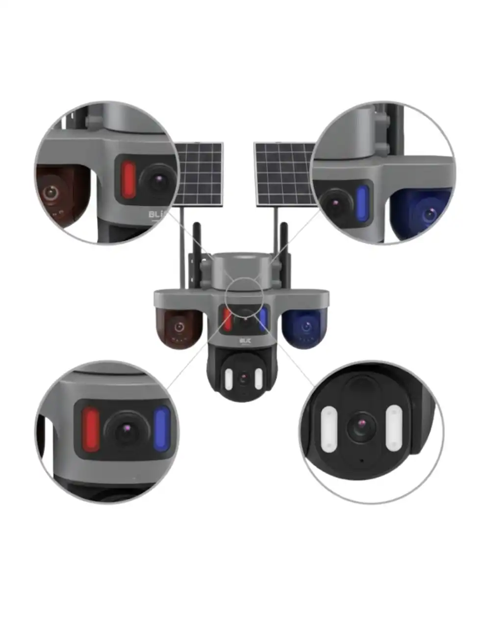 Güneş enerjili 4G kablosuz güvenlik kamerası, kablosuz kullanım ve yüksek performansı bir araya getirir. Çift solar panel yapısı sayesinde çevre dostu ve enerji tasarruflu bir güvenlik çözümü sunar. 12000mAh batarya, uzun süreli kesintisiz çalışma sağlar.SIM kartlı 4G bağlantı, WiFi olmayan alanlarda bile uzaktan izleme imkânı tanır. Çoklu lens sistemi ile 9MP çözünürlük sunarak net ve detaylı görüntüler elde edilir. Gece görüş ve hareket takibi özellikleri, güvenliği üst seviyeye taşır.Karşılıklı sesli görüşme, TF kart kayıt desteği ve mobil uygulama kontrolü ile kullanıcıya tam güvenlik sunar. Dayanıklı dış mekan tasarımı ve kolay kurulumu sayesinde her ortamda rahatlıkla kullanılabilir.