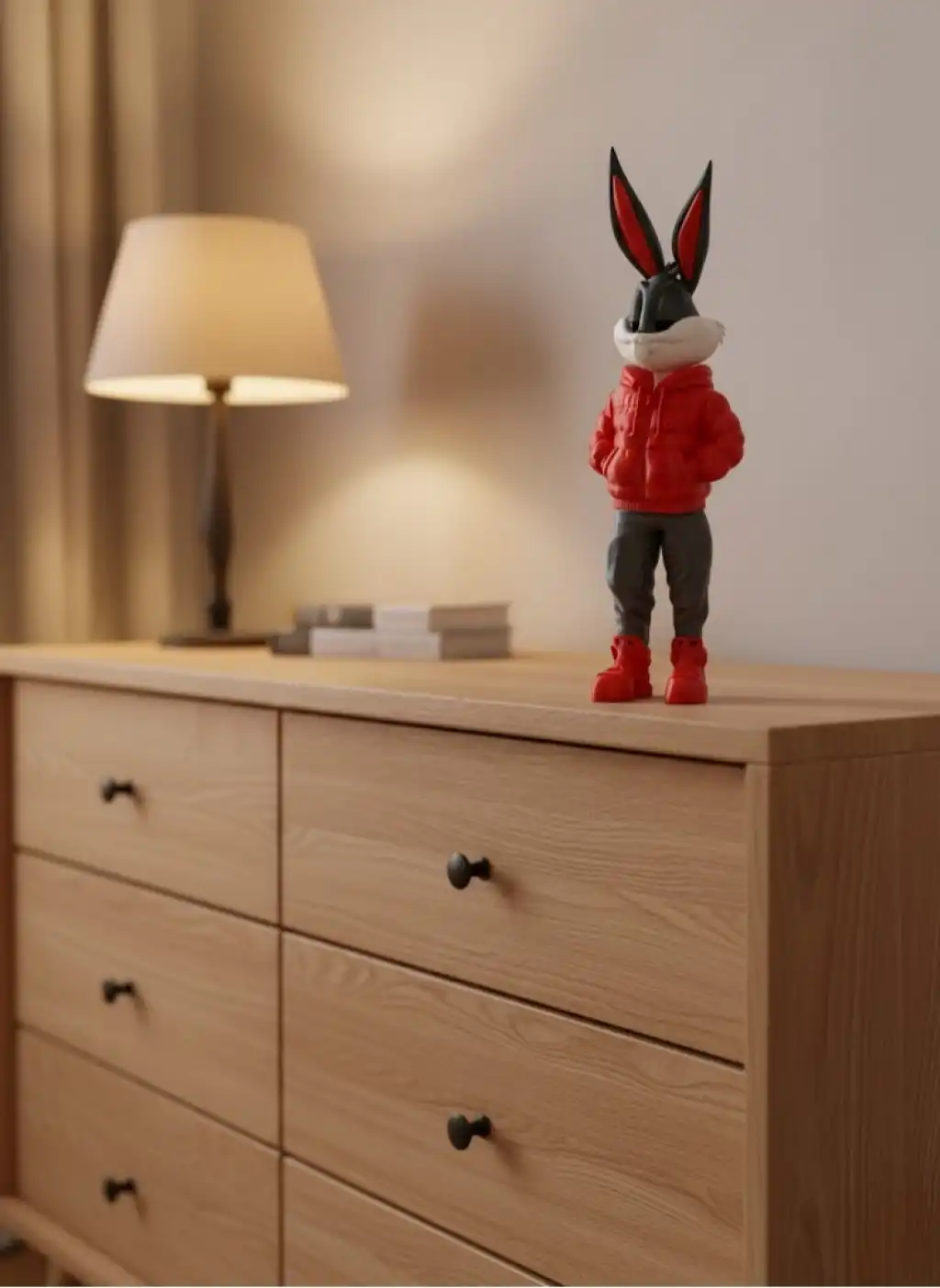 İkonik karakter tasarımına sahip Bugs Bunny figür, 10×34 cm ölçüsüyle standart biblolardan ayrılır. Koleksiyon severler için özel bir parça olmasının yanı sıra, modern ve pop-art dekorasyon stilini tamamlayan şık bir objedir. Tek başına sergilendiğinde dekorasyona karakter kazandırır.