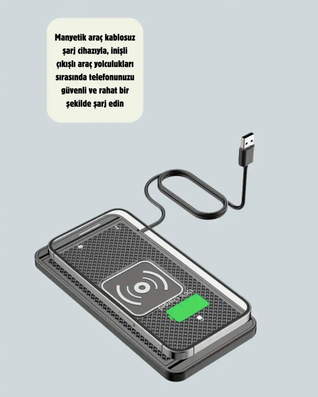 Kabloya gerek kalmadan hızlı, güvenli ve estetik bir şarj deneyimi! Bu manyetik kablosuz şarj ped, minimal tasarımı ve yüksek performansıyla dikkat çeker.Güçlü mıknatıs sistemi, telefonunuzu otomatik hizalar ve sabit bir şekilde yerinde tutar. Bu sayede sürüş sırasında bile sarsılmadan şarj etmeye devam eder.Aşırı ısınma, aşırı voltaj ve kısa devre koruması, gelişmiş güvenlik algoritmalarıyla donatılmıştır. Isı dağıtım sistemi sayesinde uzun süreli kullanımlarda bile sıcaklık kontrol altında kalır.Kaymaz silikon taban, pürüzsüz yüzeylerde bile sağlam bir kavrama sunar. Çift taraflı yapışkan aparatlar, cihazın araç konsoluna veya masaya kolayca monte edilmesini sağlar.Qi kablosuz şarj protokolü, 15W’a kadar hızlı şarj desteği sunar.Kompakt ve hafif yapısı, evde, ofiste, okulda veya konferanslarda taşımayı kolaylaştırır.Basit ve zarif tasarımı, modern araç içi dekorasyonla uyum sağlar.Kablo derdine elveda deyin — bu manyetik şarj pediyle hızlı, güvenli ve kablosuz şarj deneyimini her yerde yaşayın.
