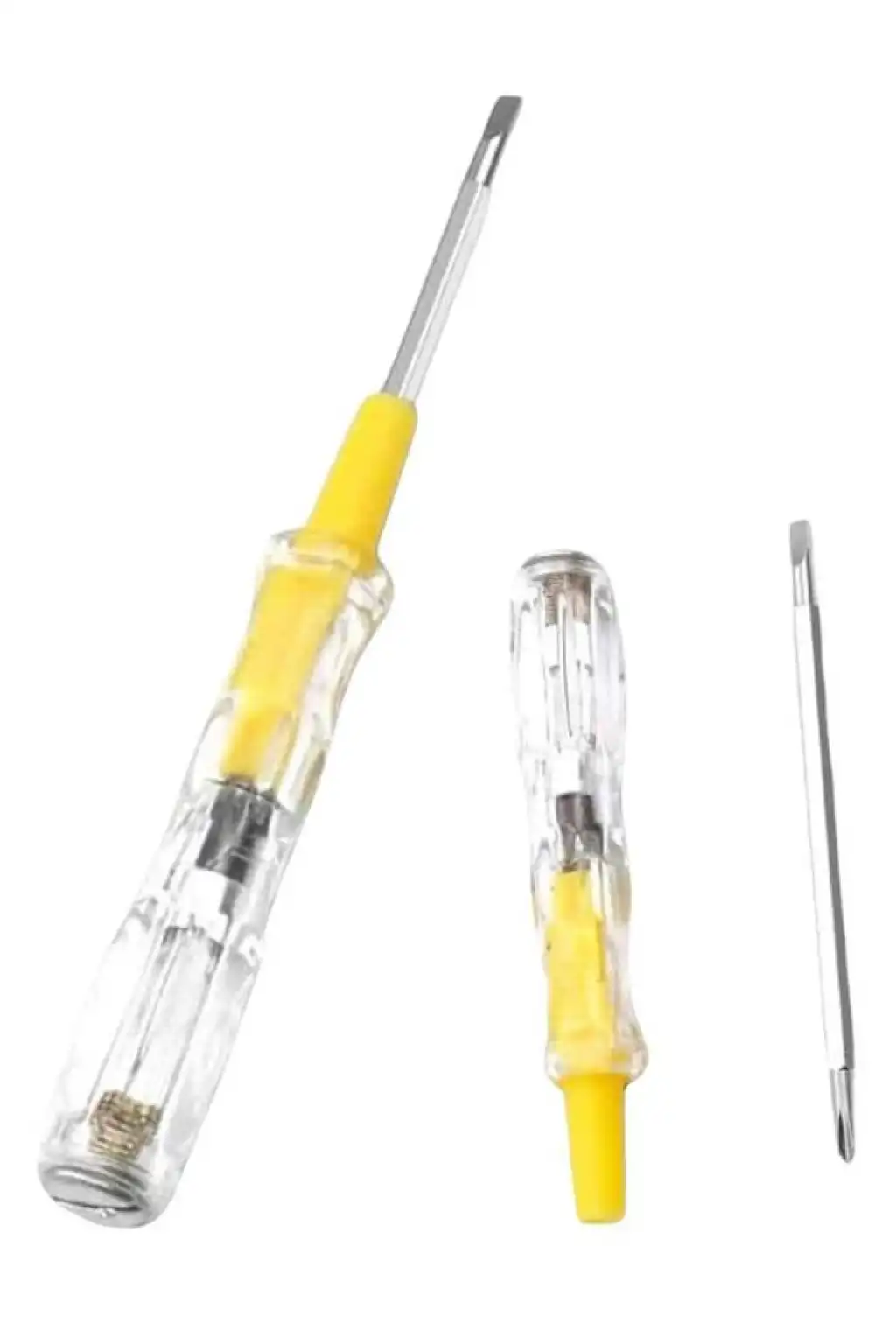 Çift Uçlu Kontrol Kalemi, elektriksel güvenlik önlemleri alırken ihtiyacınız olan temel araçlardan biridir. Evdeki elektrik tesisatınızı kontrol etmek, elektrikli cihazların güvenliğini sağlamak ve elektrik akımını tespit etmek için kullanabileceğiniz bu pratik alet, hem profesyonellere hem de amatör kullanıcılara hitap eder. Bu kontrol kalemi, elektrik akımının varlığını kolayca gösterecek şekilde tasarlanmış olup, güvenliğinizi artırmaya yönelik önemli bir adımdır. Ürünün çift uçlu yapısı, her iki ucun da elektrik akımını algılayabilmesine olanak tanır, böylece daha hızlı ve güvenilir sonuçlar elde edersiniz. Hem acil durumlar hem de düzenli kontroller için ideal olan bu kontrol kalemi, evde, iş yerinde veya hatta dışarıda rahatlıkla kullanılabilir. Güvenliğiniz için önemli bir özellik olan görsel gösterge, elektrik akımını anında tespit etmenizi sağlar ve potansiyel tehlikeleri engellemeye yardımcı olur. Ürün, 2,5 cm x 13 cm boyutlarıyla kompakt bir yapıya sahiptir ve bu sayede her an kolayca ulaşabileceğiniz bir araç olur. Çift uçlu tornavida işlevi de, kontrol kaleminin çok yönlü kullanımını sağlar. Elektrik tesisatı ile ilgili küçük tamir işlerinde, cihazlarınızı kontrol ederken veya herhangi bir elektrikli cihazla ilgili sorunları tespit ederken, bu tornavida size ek bir pratiklik sunar. Kontrol kaleminin kullanımı son derece basittir, ayrıca taşıması da oldukça kolaydır. Dayanıklı malzemesi, uzun süreli kullanımda bile ürünün işlevini kaybetmeden sağlam kalmasını sağlar. Ürünle birlikte gelen 1 adet çift uçlu kontrol kalemi, günlük elektriksel işlemlerinizi güvenle gerçekleştirmeniz için yeterlidir. Bu ürün, özellikle elektrik akımına maruz kalma riskini azaltarak, güvenli bir çalışma ortamı sağlar. Hem evde hem de iş yerinde elektrik akımını tespit etmek için bu kullanışlı ve güvenilir aracı tercih edebilirsiniz.