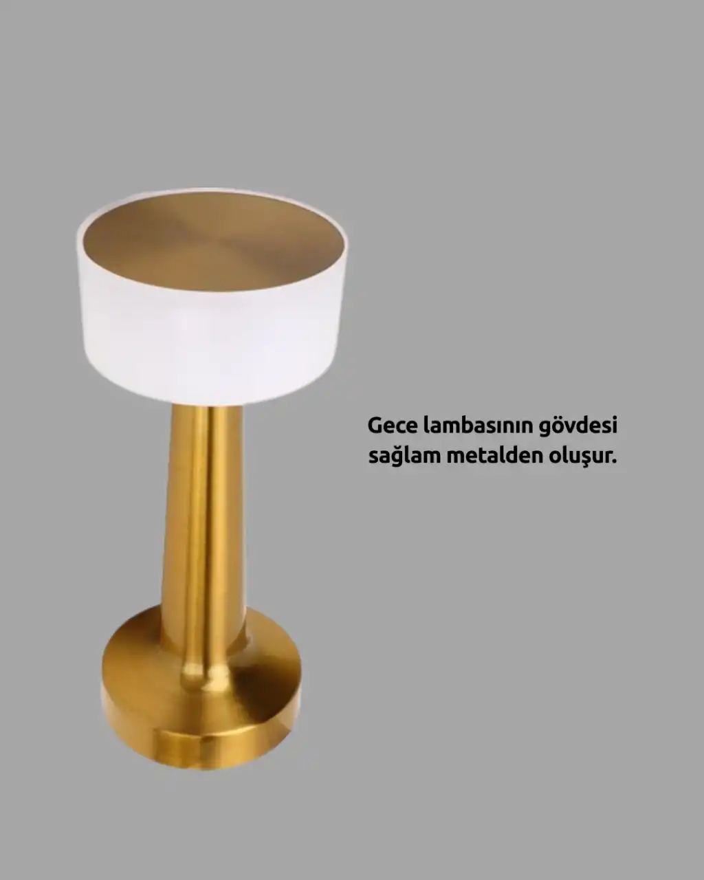 Kablosuz kullanım konforu ve estetik tasarımıyla öne çıkan bu dokunmatik masa lambası, yaşam alanlarınıza hem pratiklik hem de şıklık katmak üzere tasarlanmıştır. Geleneksel masa lambalarının aksine, bu ürün fiş ve kabloya bağlı kalmadan çalışır; USB üzerinden şarj edilebilir yapısı sayesinde dilediğiniz yerde kullanıma uygundur. Oturma odasından yatak odasına, çalışma masasından balkon köşenize kadar her noktada konumlandırılabilir.Modern metal gövdesi, sadece görsel zarafet sunmakla kalmaz; aynı zamanda sağlamlık ve uzun ömürlü kullanım garantisi verir. Estetik ve dayanıklı malzeme birleşimi sayesinde hem ev hem de ofis kullanımında ideal bir tercihtir. Kablo karmaşasından tamamen uzak bu tasarım, minimal yaşam alanları için mükemmel bir çözüm sunar.Dokunmatik sensörlü kontrol sistemi, kullanıcı dostu bir deneyim sağlar. Lambayı açmak, kapatmak ya da ışık şiddetini değiştirmek için yalnızca hafifçe dokunmanız yeterlidir. Karanlıkta şalter arama derdine son veren bu sistem, özellikle gece lambası olarak kullanıldığında büyük kolaylık sağlar.Lambada bulunan üç farklı ışık modu sayesinde ışık ihtiyacınızı tam olarak karşılayabilirsiniz: Düşük parlaklık modu: Gece yatarken ya da rahatlamak istediğinizde yumuşak bir aydınlatma sağlar. Orta parlaklık modu: Ortam ışığı için idealdir. Yüksek parlaklık modu: Okuma, yazma ya da masa başı çalışmaları için gerekli olan güçlü aydınlatmayı sunar.Işık kaynağı olarak kullanılan LED teknolojisi, hem çevre dostudur hem de düşük enerji tüketimi ile uzun süreli ekonomik kullanım sağlar. 1.5 volt voltajla çalışan lamba, enerji tasarrufunun yanı sıra güvenli kullanım imkânı da sunar. Üstelik LED ampul, sıcaklık üretmeden çalıştığı için çocuk odalarında da gönül rahatlığıyla kullanılabilir.Metal gövde, cihazın genel yapısını güçlendirirken, ürünün kaymaz ve stabil yapısı sayesinde düşme ya da devrilme riski minimize edilmiştir. Lambanın dengeli duruşu, hem estetik bütünlük hem de güvenlik açısından avantaj sağlar.Taşınabilir yapısı, lambayı dilediğiniz noktaya taşımanızı mümkün kılar. Pil gücüyle çalıştığı için elektrik erişimi olmayan yerlerde de aydınlatma sağlar. Kamp, balkon keyfi, kitap okuma köşeleri gibi birçok farklı alanda kullanım için uygundur. Kompakt boyutları sayesinde çantanıza bile sığabilir.Bu masa lambası, hem şık bir dekoratif obje hem de fonksiyonel bir aydınlatma cihazı olarak dikkat çeker. Ürün, sade ve zamansız tasarımı sayesinde klasik ya da modern tüm dekorasyon stilleriyle kolayca uyum sağlar. Oturma odası, başucu, ofis masası, kitaplık üstü gibi pek çok alanda hem işlevsel hem dekoratif olarak kullanılabilir.Teknik Özellikler: Malzeme: Metal Ampul Türü: LED Işık Sayısı: 1 Parlaklık Ayarı: 3 kademeli (düşük – orta – yüksek) Voltaj: 1.5V Şarj: USB üzerinden şarj edilebilir Kullanım Şekli: Kablosuz, taşınabilir Kontrol Tipi: Dokunmatik sensör