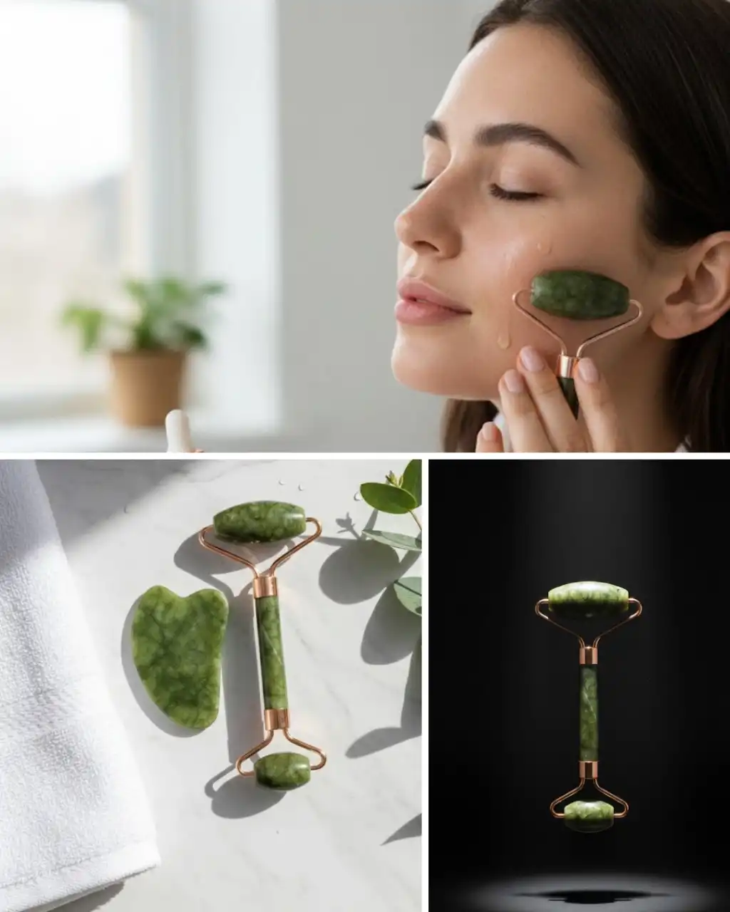 Doğal Yeşim Roller ve Gua Sha Yüz Şekillendirme Seti