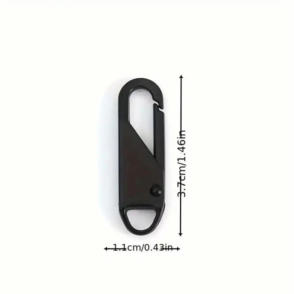 • Fermuar başlıklı karabina kilit: Fermuar sürgüsü, fermuarın bir tarafında bir baskı ile sabitlenir, bu da fermuarı fazla çaba harcamadan onarmak için daha iyi bir çözümdür