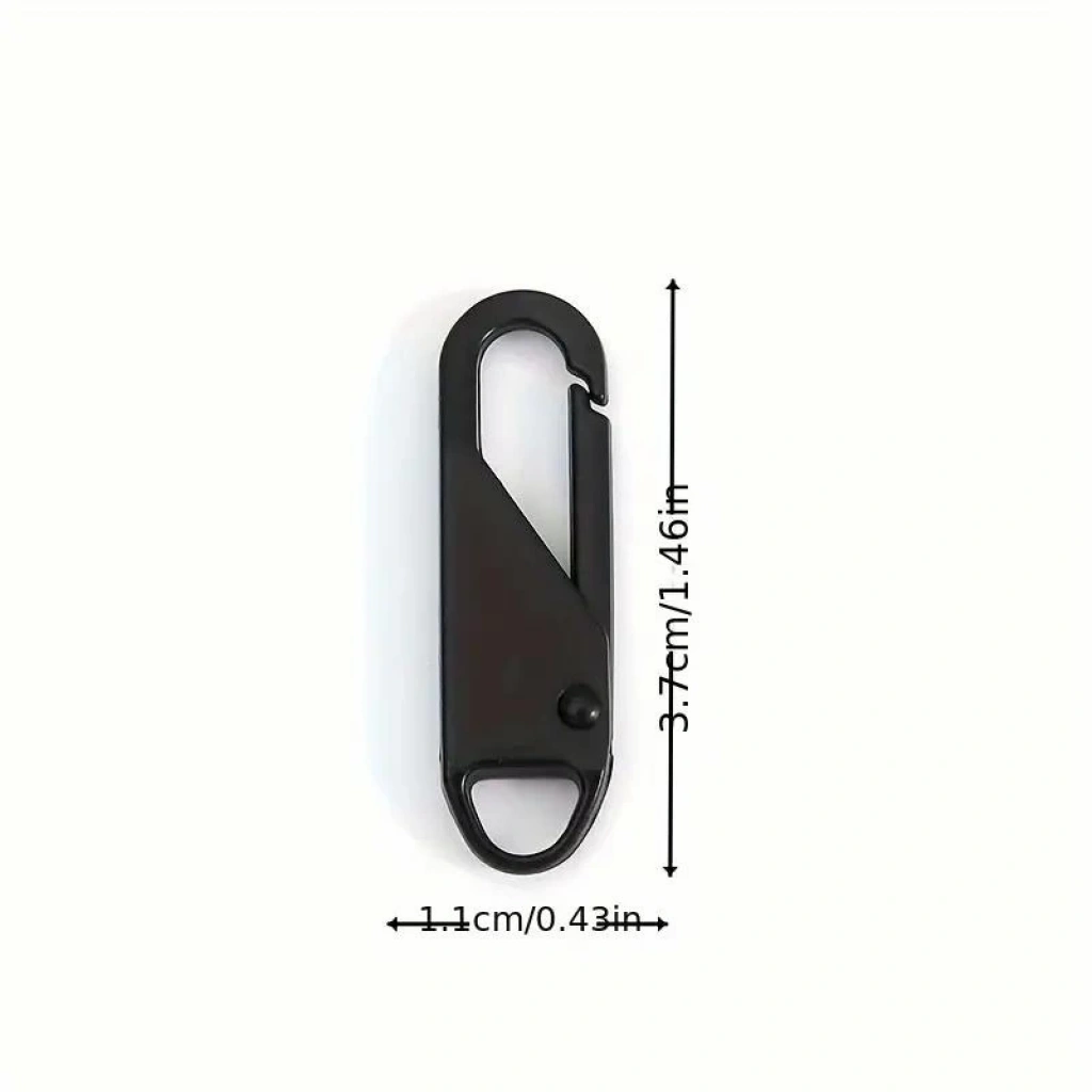 Fermuar başlıklı karabina kilit: Fermuar sürgüsü, fermuarın bir tarafında bir baskı ile sabitlenir, bu da fermuarı fazla çaba harcamadan onarmak için daha iyi bir çözümdür