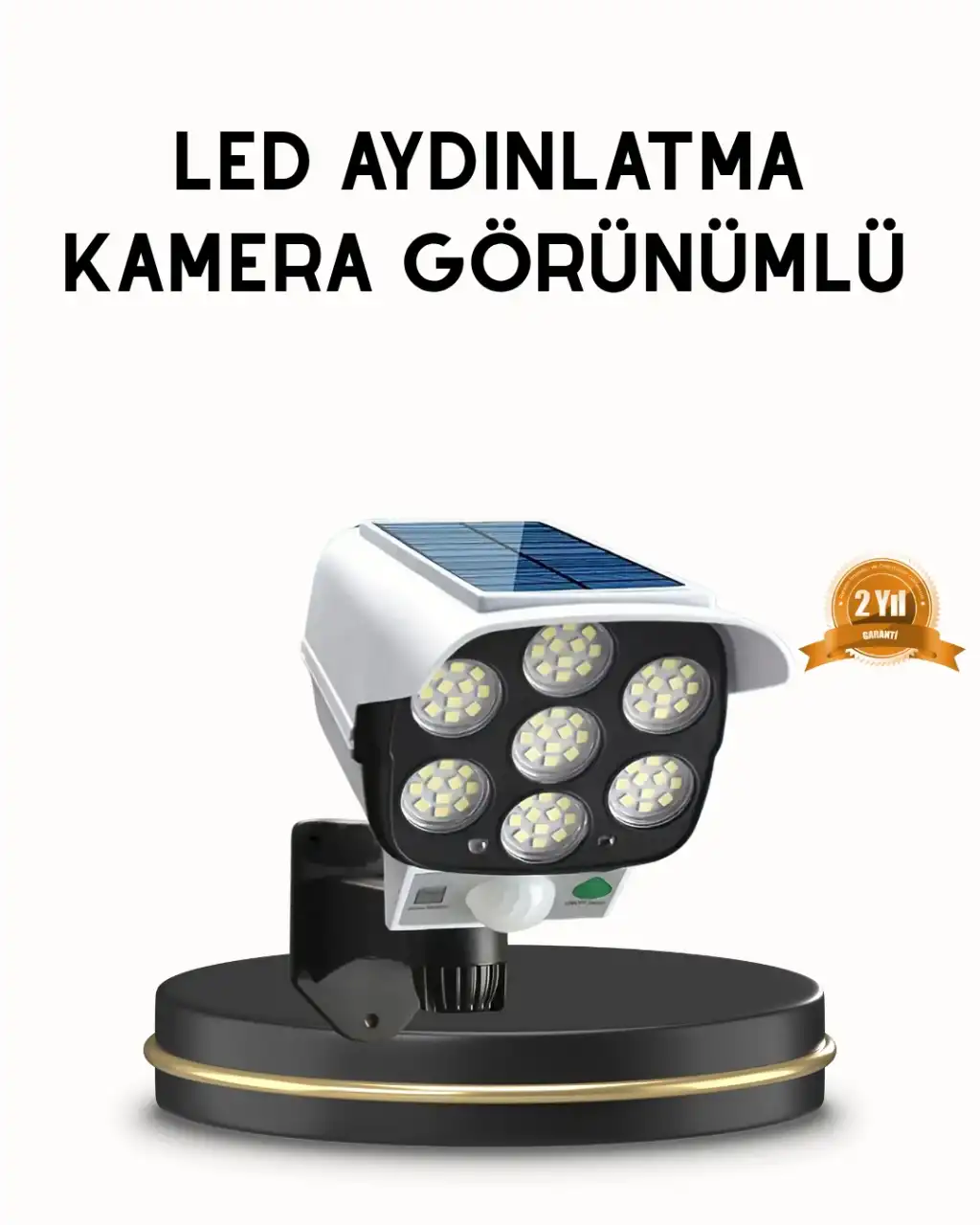 Güneş enerjisiyle çalışan bu dış mekân güvenlik ışığı, modern tasarımı ve çok yönlü kullanım özellikleriyle dış alanlarda yüksek verimlilik sunar. Gelişmiş solar panel sistemi, gündüzleri güneş enerjisini depolayarak gece kullanımına hazır hâle getirir. Elektrik tüketimi gerektirmediği için hem çevreci hem de bütçe dostu bir çözüm sunar. Bahçelerden garajlara, çitlerden yürüyüş yollarına kadar pek çok alanda güvenli bir aydınlatma sağlar.Üründe bulunan PIR hareket sensörü, 10 – 20 ft arasında herhangi bir hareketi algıladığında anında devreye girerek güçlü LED ışıkları yakar. Bu özellik, karanlıkta güvenliği artırır ve istenmeyen hareketleri tespit ederek caydırıcı bir rol oynar. Sensör, enerji tasarrufu sağlamak adına hareket algılanmadığında düşük ışık moduna geçerek cihazın toplam kullanım süresini yaklaşık 40 saate kadar çıkarır. Bu uzun süreli performans, solar aydınlatma kategorisindeki en verimli çözümlerden biridir.Solar panel ve ışık, 5 eksen üzerinde ayarlanabilir yapıya sahiptir. Güneş panelini gün içinde en çok ışık alan pozisyona yönlendirebilir, LED ışığı ise tam aydınlatma ihtiyacı olan bölgeye çevirebilirsiniz. Böylece hem enerji verimi hem de ışık verimliliği maksimum düzeye çıkar. IP66 sertifikası, ürünün yağmur, kar, toz ve rüzgâr gibi zorlu hava koşullarına dayanıklı olduğunu kanıtlar. Yıllarca sorunsuz kullanım sağlayan bu su geçirmez yapı, dış mekânların her koşulda güvenli şekilde aydınlatılmasını mümkün kılar.Kolay montaj sistemi sayesinde duvara, direğe veya çitlere herhangi bir elektrik tesisatına ihtiyaç duymadan monte edilebilir. Şık ve modern tasarımı, dış mekân dekorasyonuna göz alıcı bir dokunuş katar. Hem fonksiyonel hem dekoratif olan bu ışık, özellikle enerji tasarrufu sağlamak isteyen kullanıcılar için ideal bir çözümdür.Solar enerji ile çalışan, uzun ömürlü, dayanıklı ve güçlü aydınlatma sunan bu ürün, dış mekân güvenliği için en iyi çözümlerden biridir.