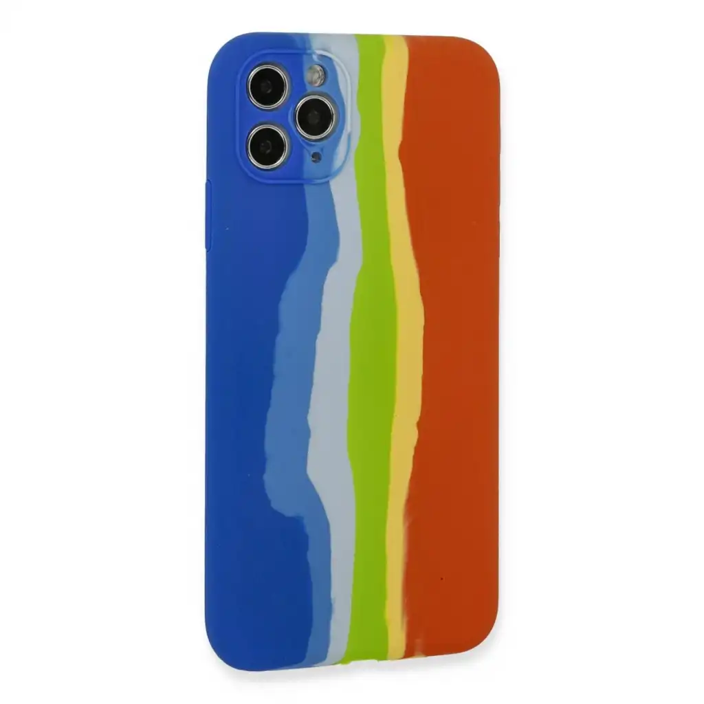 İphone 11 Pro Kılıf Ebruli Lansman Silikon - Mavi-turuncu