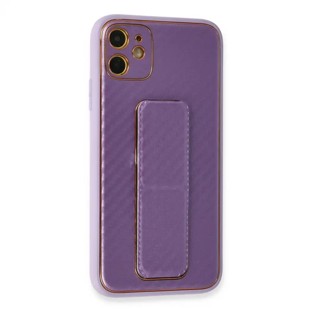 İphone 12 Kılıf Coco Karbon Standlı Kapak - Mor