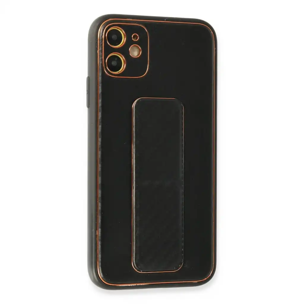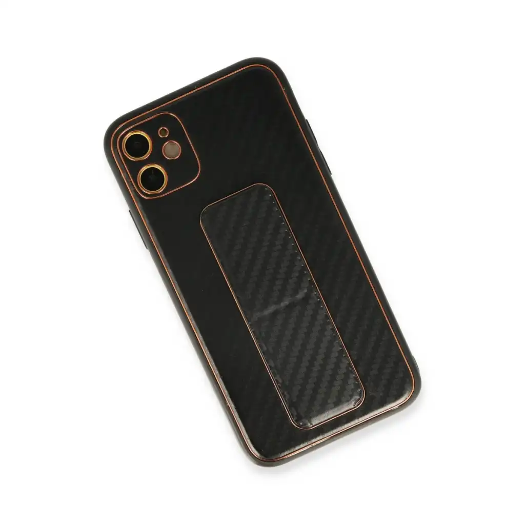 İphone 12 Kılıf Coco Karbon Standlı Kapak - Siyah