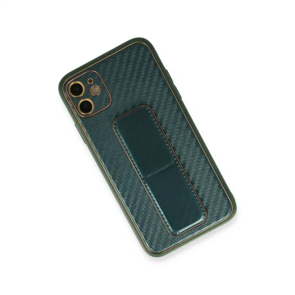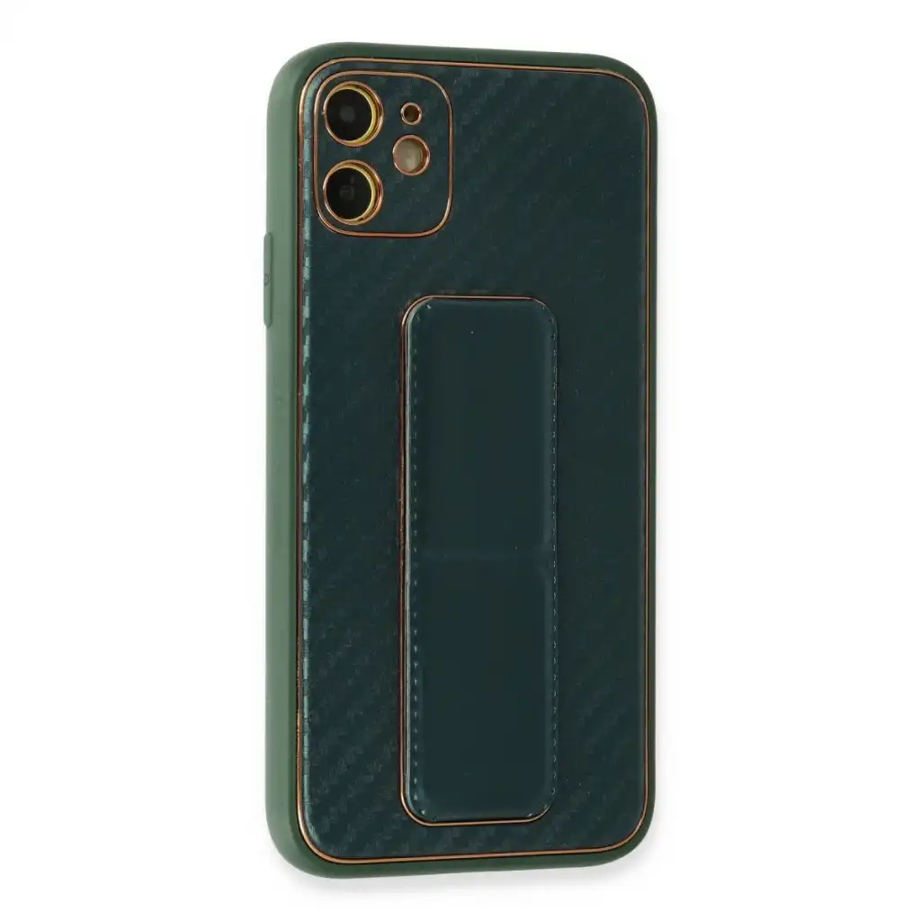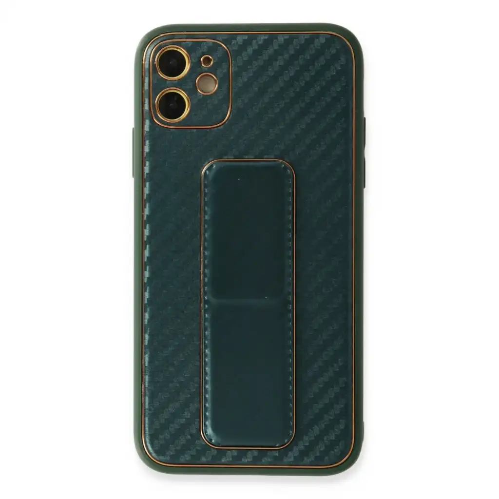 İphone 12 Kılıf Coco Karbon Standlı Kapak - Yeşil