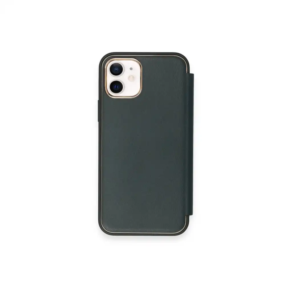 İphone 12 Kılıf Dolpin Kapaklı - Koyu Yeşil