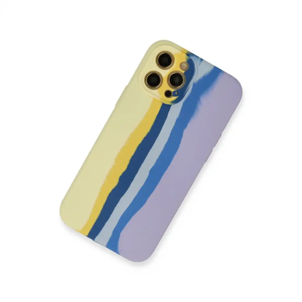 İphone 12 Pro Max Kılıf Ebruli Lansman Silikon - Sarı-lila