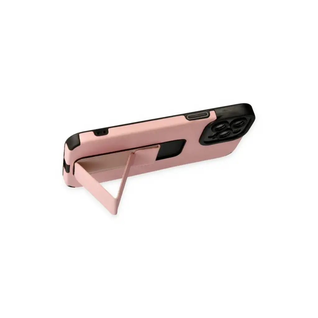 İphone 12 Pro Max Kılıf Mega Standlı Silikon - Pudra