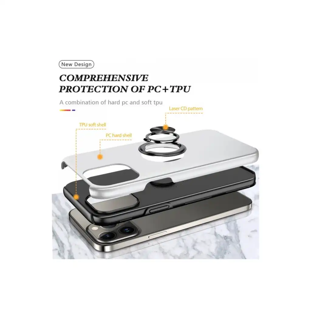 İphone 13 Pro Kılıf Elit Yüzüklü Kapak - Gümüş