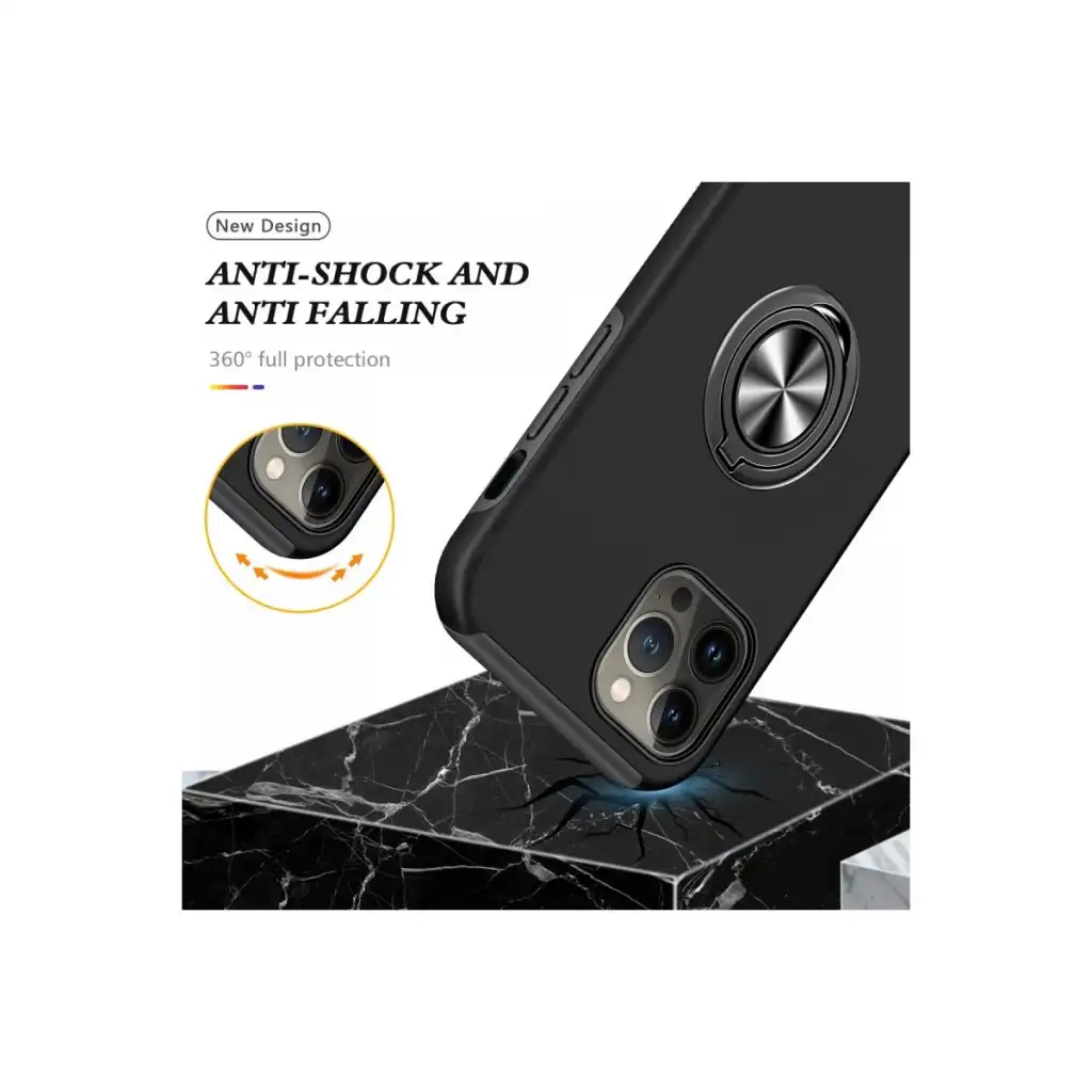 İphone 13 Pro Max Kılıf Elit Yüzüklü Kapak - Siyah