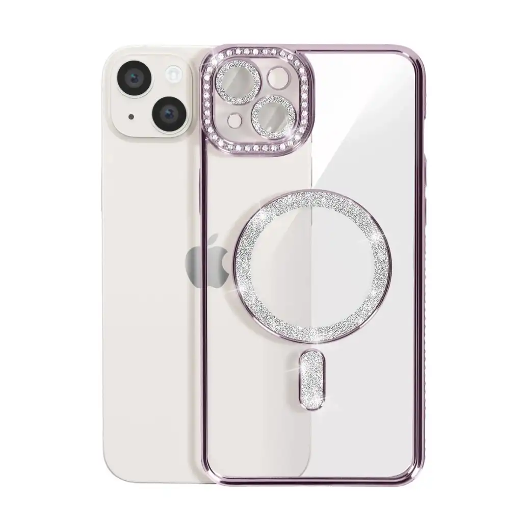 İphone 14 Kılıf Joke Simli Magneticsafe Kılıf - Derin Mor