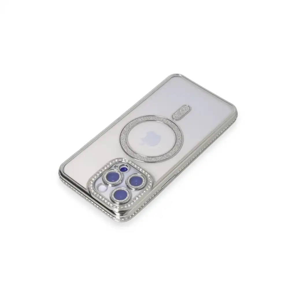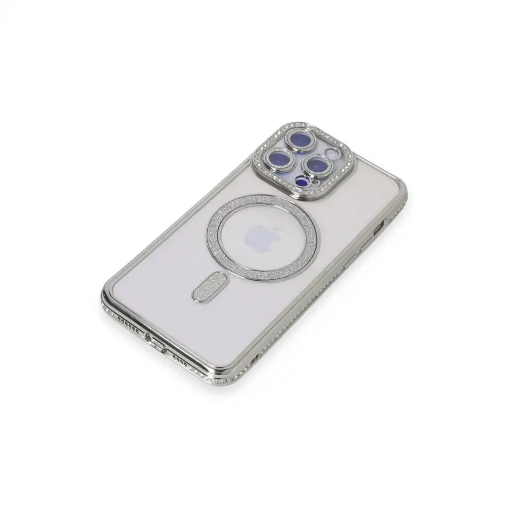 İphone 14 Pro Kılıf Joke Simli Magneticsafe Kılıf - Gümüş