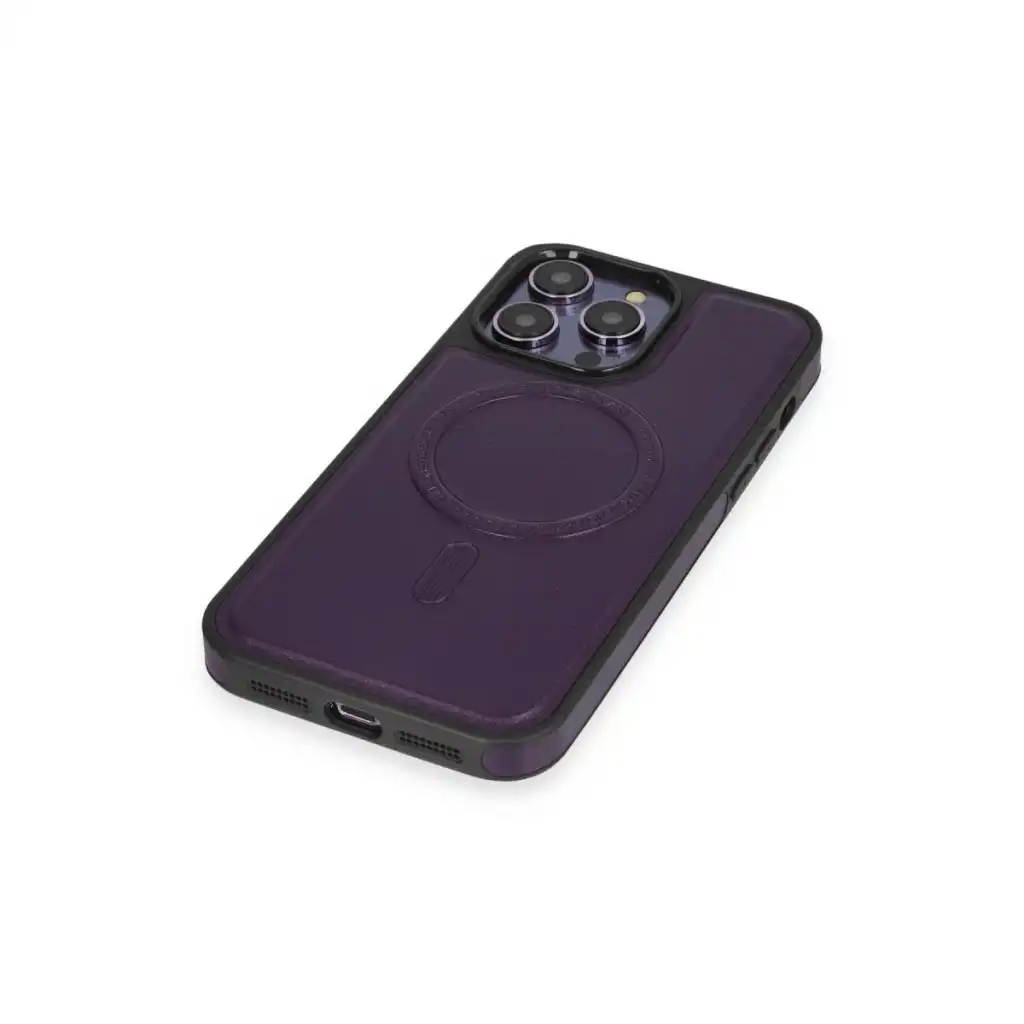 İphone 14 Pro Max Kılıf Ozzi Magsafe Deri Kapak - Derin Mor