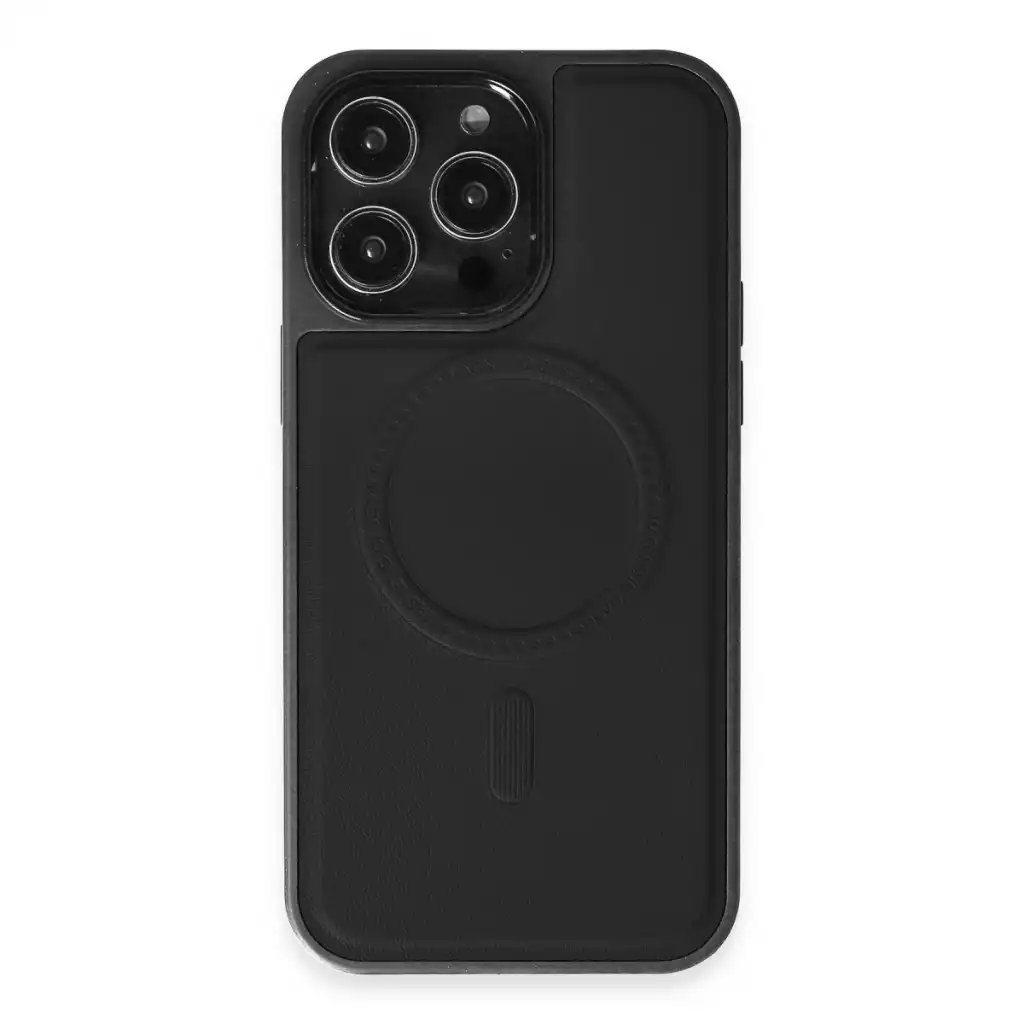 İphone 15 Pro Max Kılıf Ozzi Magsafe Deri Kapak - Siyah