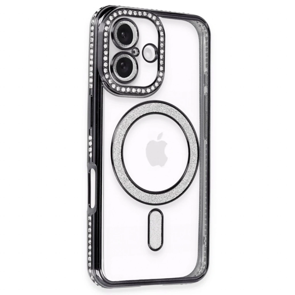 İphone 16 Plus Kılıf Joke Simli Magneticsafe Kılıf - Siyah