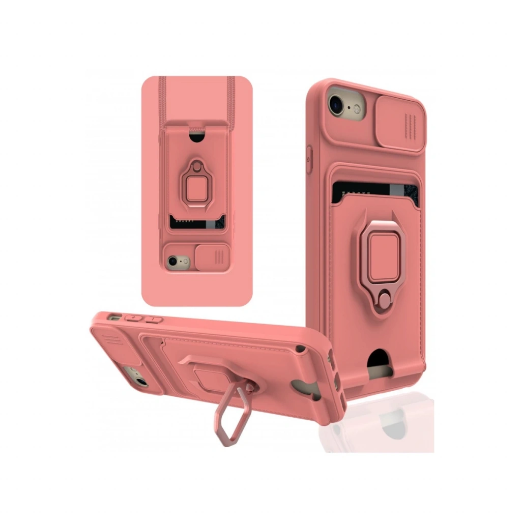 İphone 7 Kılıf Zuma Kartvizitli Yüzüklü Silikon - Pembe