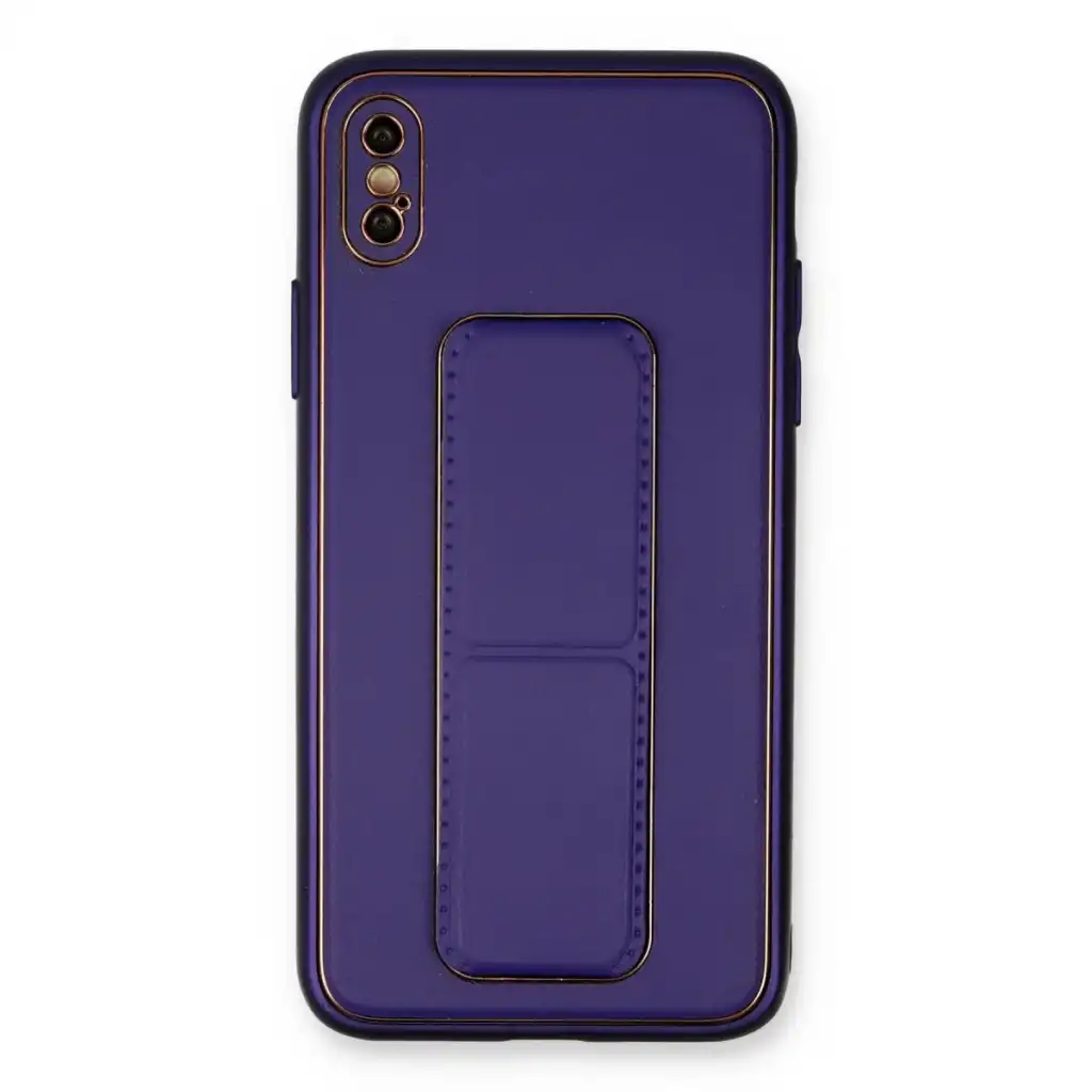 İphone Xs Max Kılıf Coco Deri Standlı Kapak - Mor