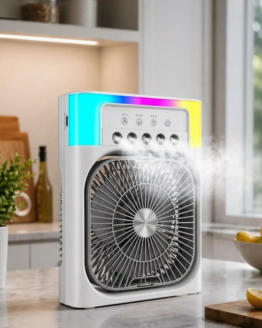 RGB ışıklı mini soğutucu fan, hem serinlik hem dekoratif kullanım isteyenler için tasarlanmış çok amaçlı üründür. Fan sistemi ile hava akışı oluştururken su püskürtme desteği ile ferahlık hissi sunar.USB bağlantısı sayesinde bilgisayar, adaptör veya powerbank ile çalışabilir.Sessiz motor teknolojisi ile uyku ve çalışma sırasında konfor sağlar.Renkli ışık seçenekleri ile odanıza hoş görünüm kazandırır.Kompakt boyutu sayesinde masa, komodin ve ofis alanlarında rahat kullanım sunar.Yaz aylarında pratik ve kullanışlı yardımcı üründür.