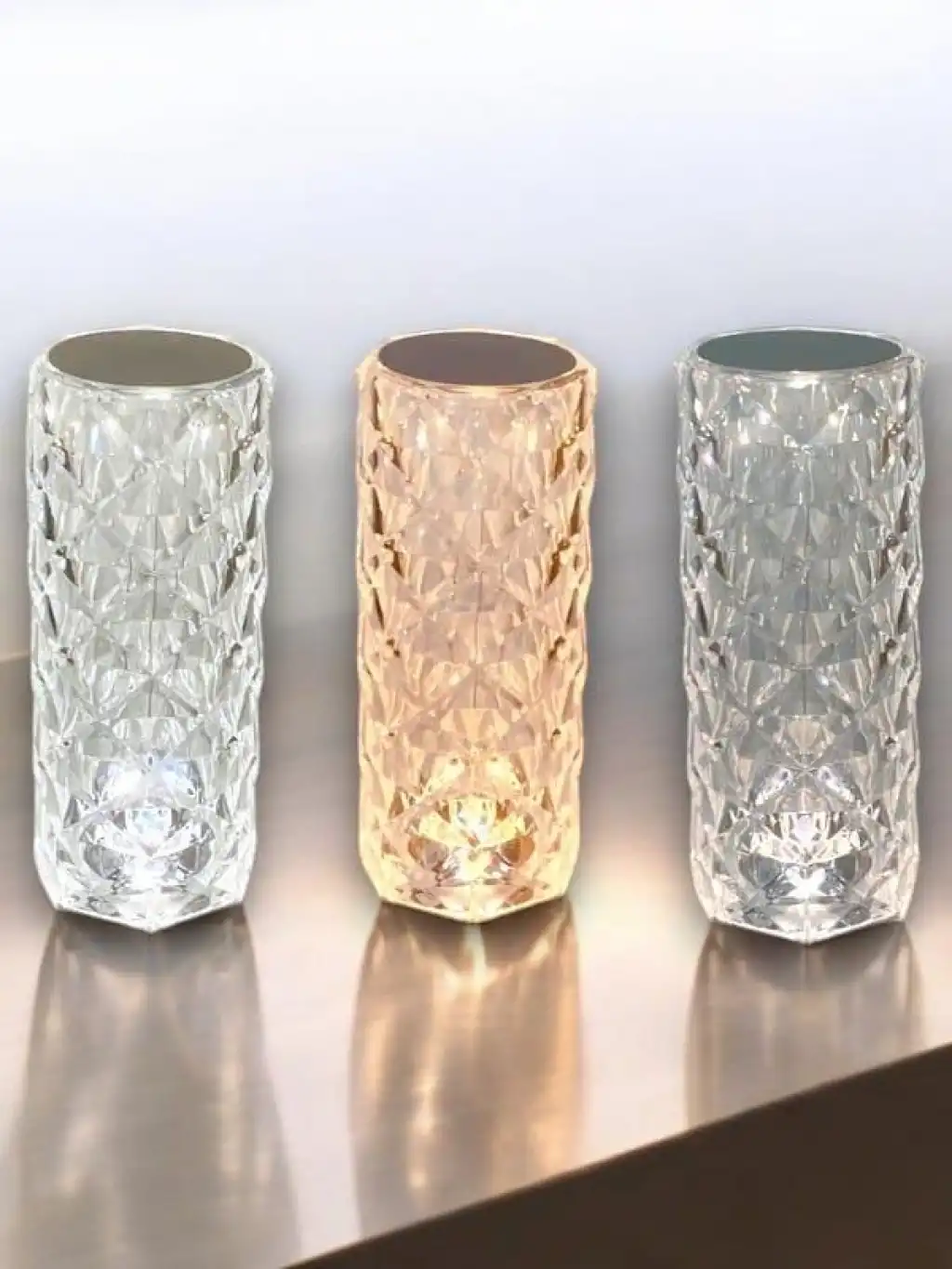 kristal masa lambası rgb renk değiştiren gece lambası 16 renk ve 4 mod dokunmatik kontrol Özellikler: Adı: Masa lambası Malzeme: Akrilik Varyasyon: Dokunmatik sensör Fiş: Usb Pil: Şarj edilebilir pil Güç: 1.5w Giriş voltajı: 5v 0.3a Ürün boyutu: D150 * h260mm Ambalaj listesi 1 * masa lambası 1 * usb kablosu 1 * Kumanda Kristal Elmas Dekoratif Masa Lambası: Benzersiz 3D kesme teknolojisi ile üretilen elmas benzeri eşkenar dörtgen şekilli kristal lamba, modern ve lüks görünümüyle parlak ve renkli ışıkları yansıtır. Oda, oturma odası, yemek odası, parti, romantik ve sıcak bir atmosfer yaratır, çocuklar, sevgililer veya arkadaşlar için doğum günü/Noel/Sevgililer Günü için romantik bir sürpriz hediye için mükemmeldir. Şarj edilebilir çalışma masası lambası: RGB çalışma masası lambası, 10.000 şarj ve deşarj işlemi için kullanılabilecek yüksek kapasiteli dahili 2000 mAh pile sahiptir. Yeni geliştirilmiş entegre USB şarj arayüzü tasarımı size güvenli ve sorunsuz şarj sağlar (USB şarj kablosu teslimat kapsamına dahildir), şarj edildikten sonra 3 saat kullanılabilir ve tüm gece boyunca tek bir şarjla eşlik edebilir 16 RGB renk: Elmas LED lamba, 3 renk RGB kırmızı, yeşil ve mavi ve 16 dinamik renge sahiptir (sıcak ışık + sıcak beyaz ışık + sarı ışık + mavi ışık + kırmızı ışık vs.), 4 dinamik mod (flaş/stroboskop/açma/kapama/pürüzsüz), 6 kademeli parlaklık ayarı, en sevdiğiniz rengi ve tercih ettiğiniz ışık modunu zevkinize ve ruh halinize göre seçebilirsiniz. romantik bir atmosfer için seçin sağlar. Uzaktan kumandalı ve dokunmatik kumandalı masa lambası: Elmas masa lambası dokunmaya karşı hassastır, ele dokunarak hemen kısmayı değiştirebilir, kapatmak için üç saniye boyunca uzun basın uzaktan kumanda 24 tuşa sahiptir (kullanım kılavuzu ile) ve dokunmatik ekran ve uzaktan kumanda gelişmiş bir çip kullanır, tepki hızı hassastır, bağlantı sağlamdır ve her şey elinizdedir. Yüksek ışık geçirgenliğine sahip akrilik masa lambası: Bel şeklindeki küçük masa lambası, güvenli ve yalıtımlı, zarar görmesi kolay olmayan ve ışık geçirgenliği %95'ten fazla olan akrilik malzemeden yapılmıştır. RGB ışık, elmas kristali ile zemine yansıtılır ve harika bir LED ışık kaynağı gösterir. Şık görünüm, sizin için harika bir ışık ve gölge şenliği yaratmak için parlak ışıklarla kombine edilmiştir.