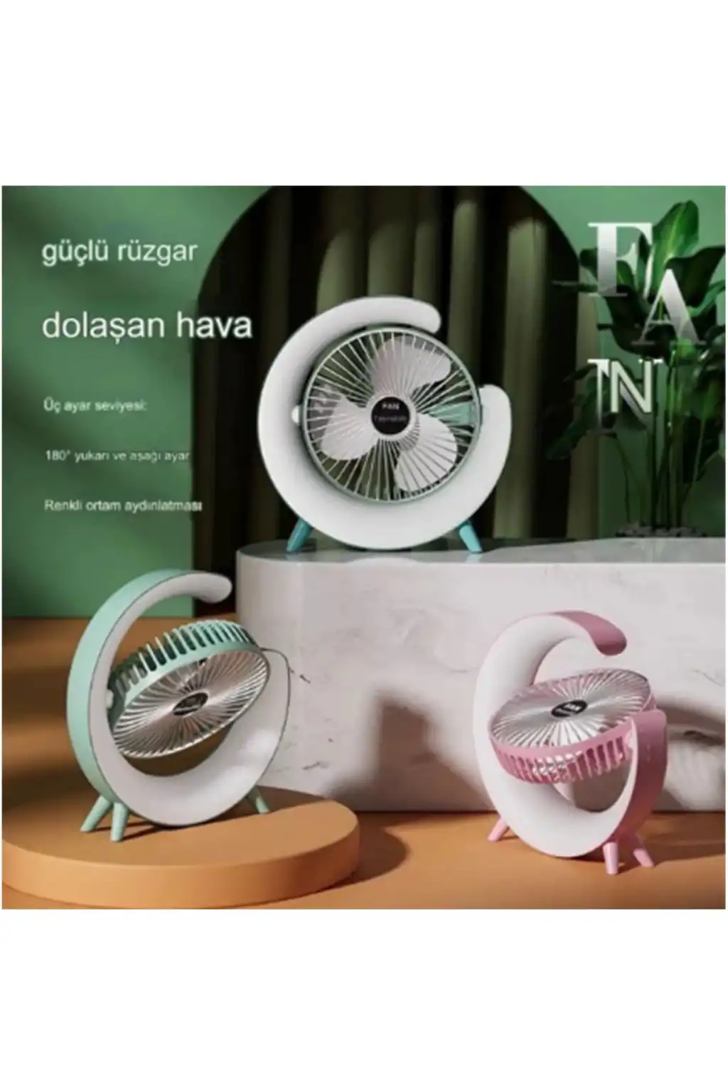 Masaüstü Vantilatör Usb Şarjlı Rgb Led Işıklı 3 Kademeli 180° Ayarlanabilir Soğutucu Fan