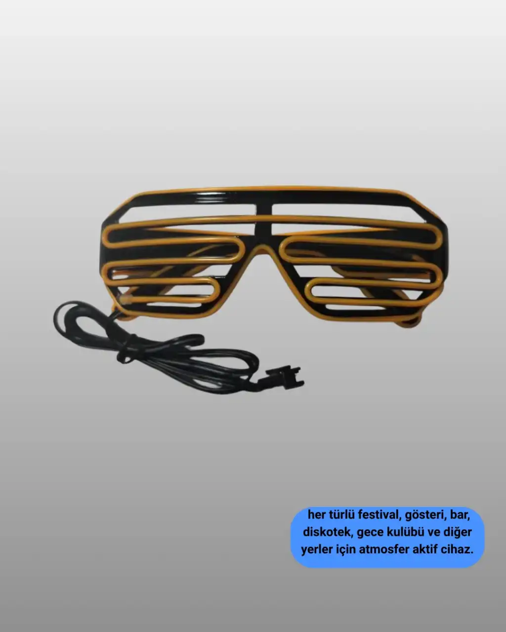 LED ışıklı eğlence gözlüğü, sosyal etkinliklerde fark yaratmak isteyenler için tasarlanmış keyifli bir aksesuardır. Renkli ışık detaylarıyla eğlencenin enerjisini yansıtır ve bulunduğunuz ortamda dikkat çekici bir görünüm sunar.Karanlık ve loş alanlarda LED ışıklar etkisini daha güçlü gösterir. Konser ve parti ortamlarında görsel olarak ön plana çıkar. Fotoğraf ve video çekimlerinde eğlenceli kareler elde edilmesine katkı sağlar.Hafif ve ergonomik yapısı sayesinde rahat bir kullanım sunar. Uzun süreli takıldığında bile konforunu korur. Pratik tasarımı ile her yaştan kullanıcı için uygundur.Kutlama ve etkinliklerde tamamlayıcı bir aksesuar olarak tercih edilir. Eğlenceyi daha canlı ve unutulmaz hale getirir.