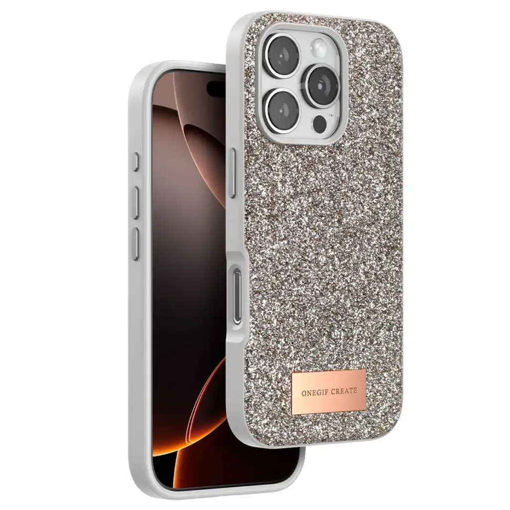Onegif İphone 16 Pro Max Bright Simli Kapak - Gold