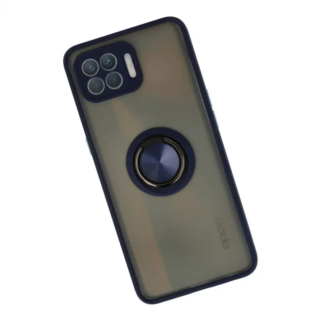 Oppo Reno 4 Lite Kılıf Montreal Yüzüklü Silikon Kapak - Lacivert